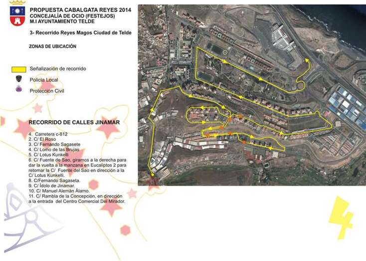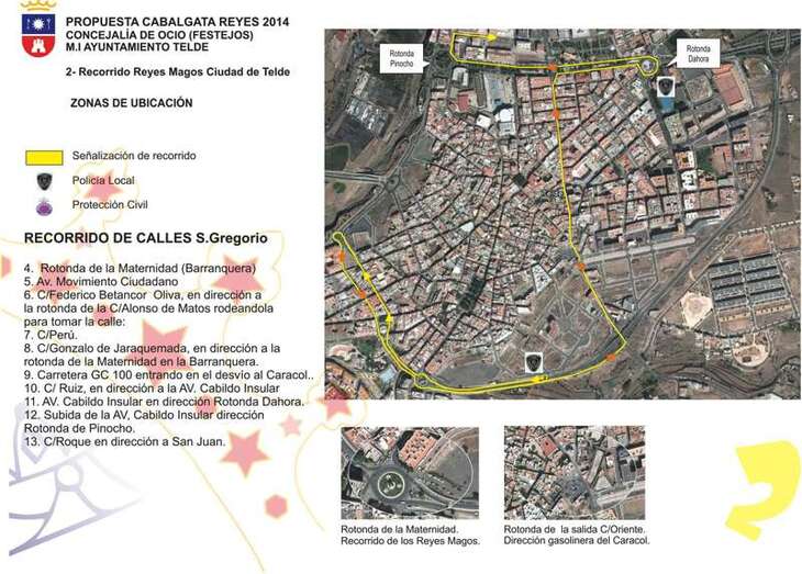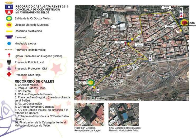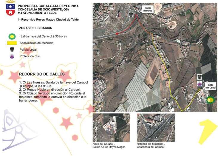 Toda la comitiva real será escoltada por la Policía Local y estará acompañada por las carrozas reales y los personajes infantiles más conocidos por los niños y niñas de la Ciudad de Telde.