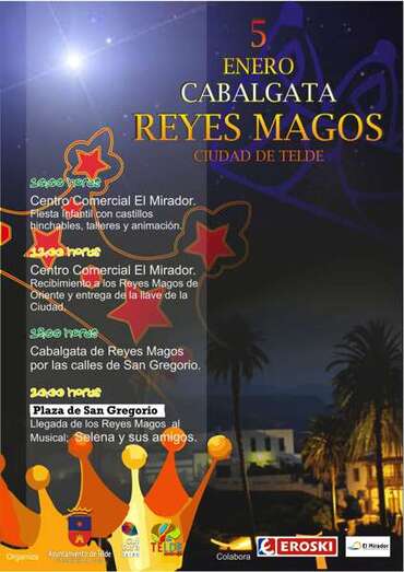 Ya por la tarde, los Reyes Magos de Oriente tienen previsto realizar su cabalgata oficial partiendo alrededor de las 18:00 horas. Finalmente el recorrido del desfile ha sido modificado resultando el siguiente: desde la c/ Doctor Melián, a lomos de sus camellos cruzarán el Parque Franchy y Roca, seguirán por las calles Oriente y Juan Diego de la Fuente para realizar una parada y su tradicional ofrenda frente al Belén de San Gregorio, donde también escucharán los deseos de los teldenses. Continuarán posteriormente por la Avenida de la Constitución, la c/ Poeta Fernando González, la Avenida del Cabildo Insular en dirección a la rotonda de Dahora donde entrarán hacia la c/ Poeta Pablo Neruda en dirección al Mercado Municipal, punto donde finalizará la cabalgata real para que SSMM los Reyes Magos puedan volver a la Plaza de San Gregorio a seguir atendiendo a los niños del municipio.