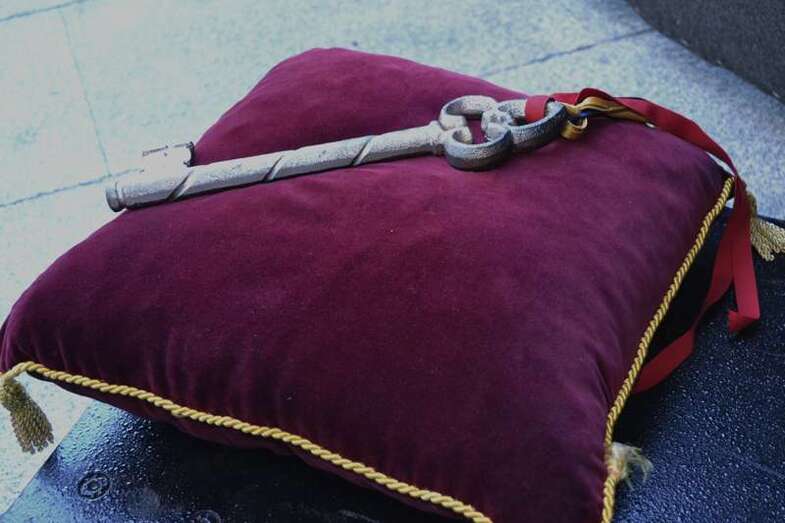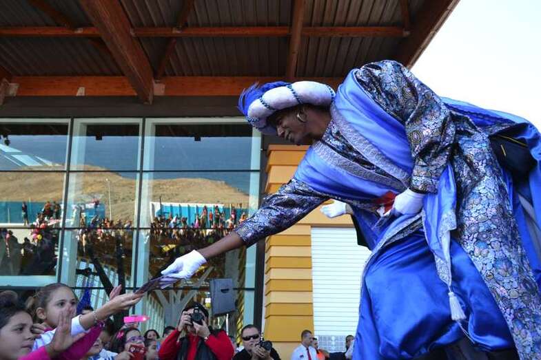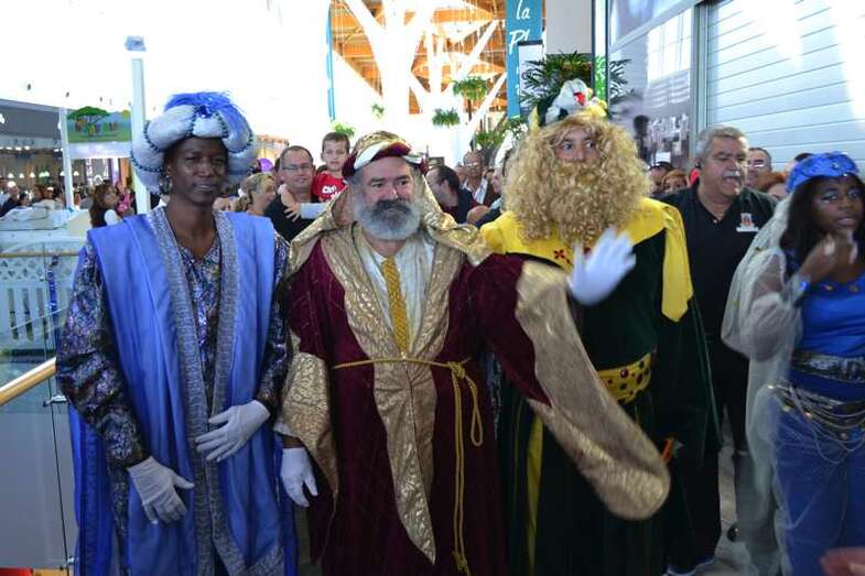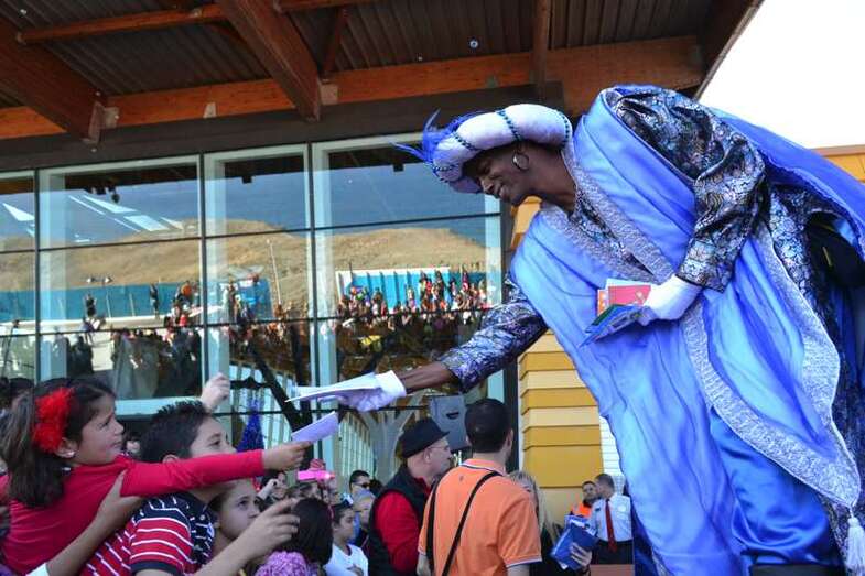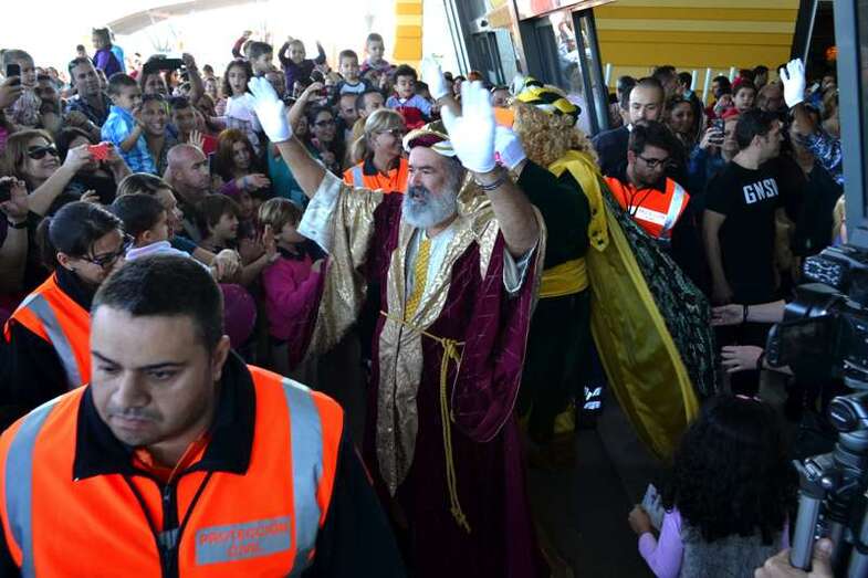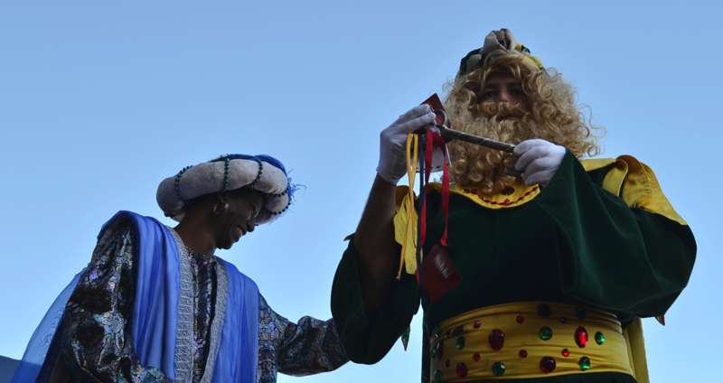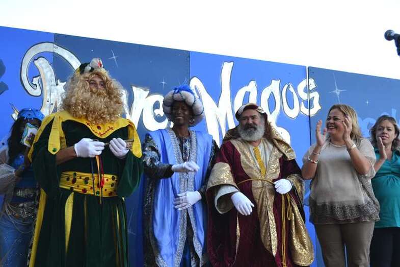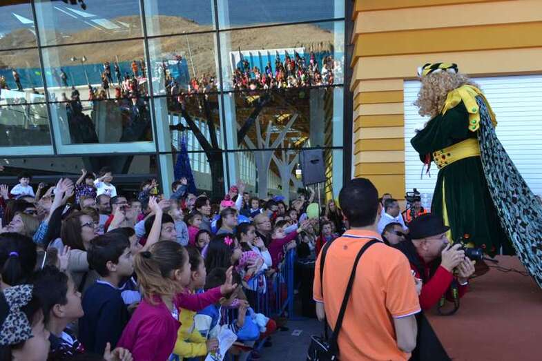 Telde.- Sus Majestades los Reyes Magos llegaron esta mañana a Telde procedentes de las lejas tierras de Oriente para repartir ilusión entre los miles de niños teldenses. Este mediodía tuvo lugar la recepción oficial en el Centro Comercial El mirador en la que la alcaldesa Mª del Carmen Castellano, acompañada por otras autoridades municipales, les hizo entrega de llaves de la ciudad. TA ofrece reportaje fotográfico del acto.