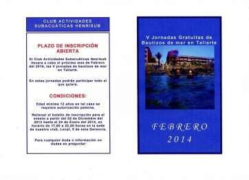 Telde.- El Club de Actividades Subacuáticas Henrisub volverá a realizar en el mes de febrero, en Taliarte, los llamados bautizos de mar. Esta es la quinta edición que lo realiza. Una actividad que será gratuita para todas aquellas personas que quieran iniciarse en el mundo del submarinismo y conocer los fondos marinos.