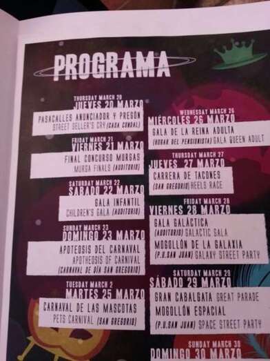El martes 25 de marzo, también como novedad, tendrá lugar el Carnaval de las Mascotas; mientras que el día 27 regresa la popular Carrera de Tacones. Tiene previsto partir de San Gregorio y pasará por San Juan, incluido un circuito por el auditorio del parque urbano.