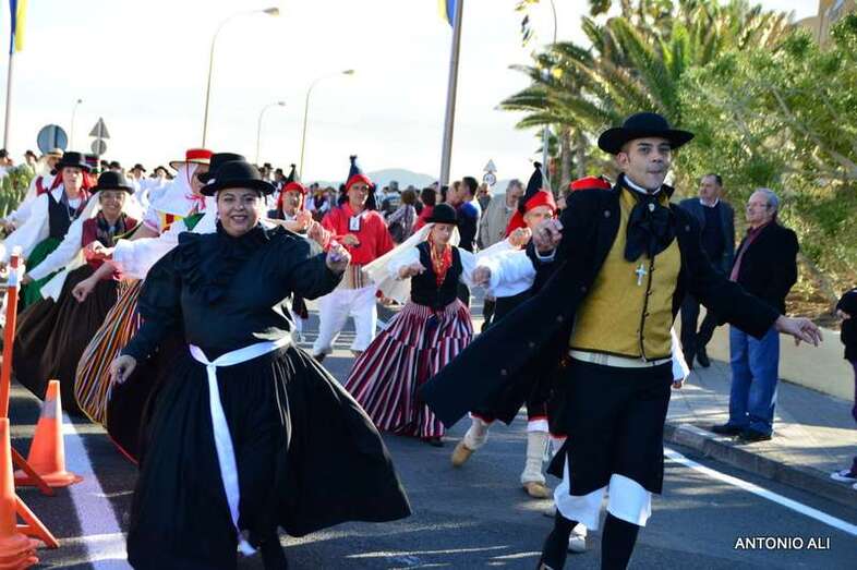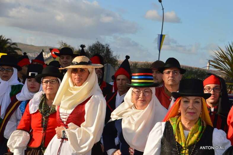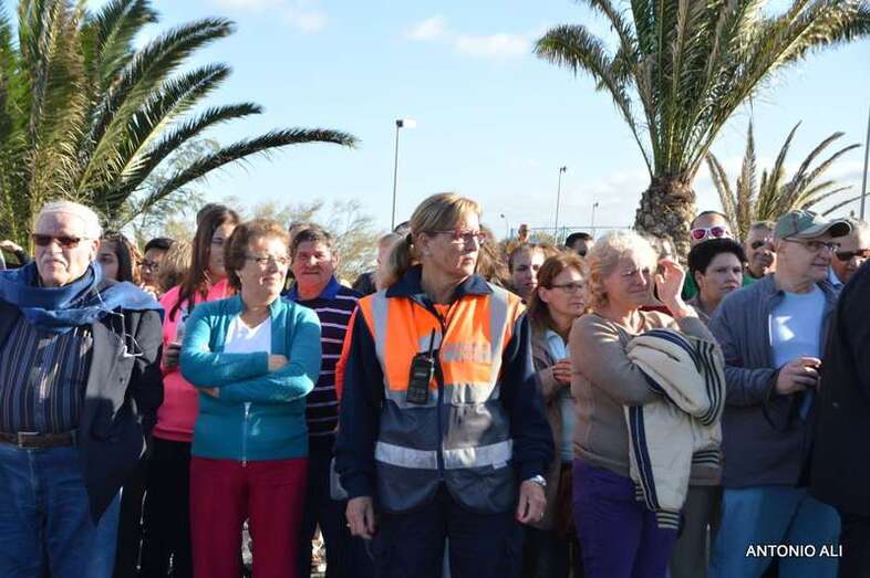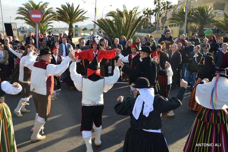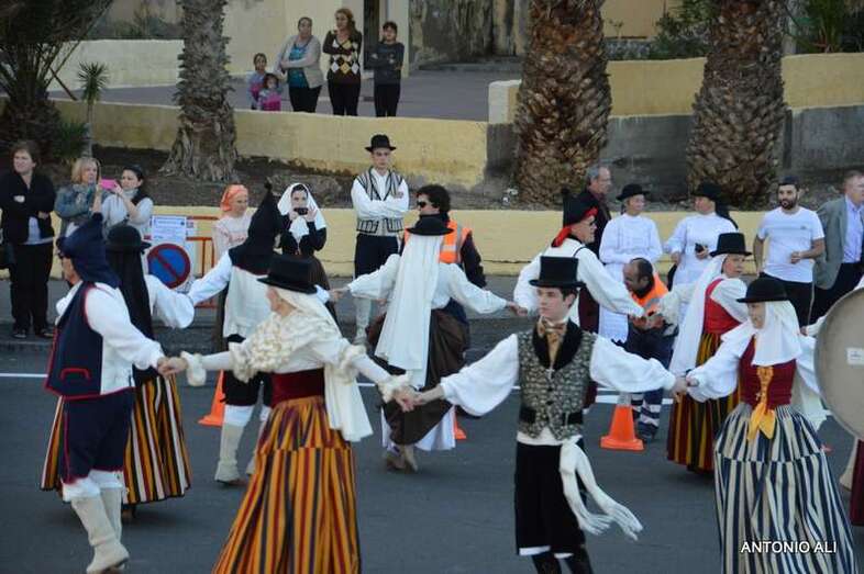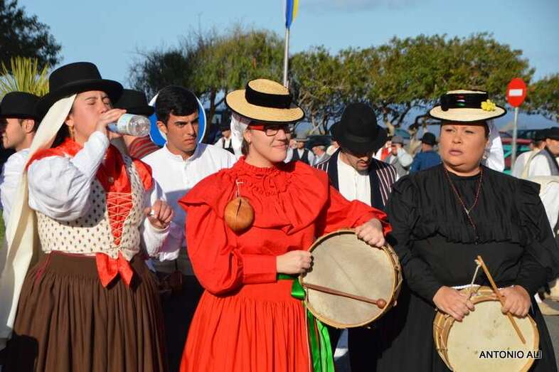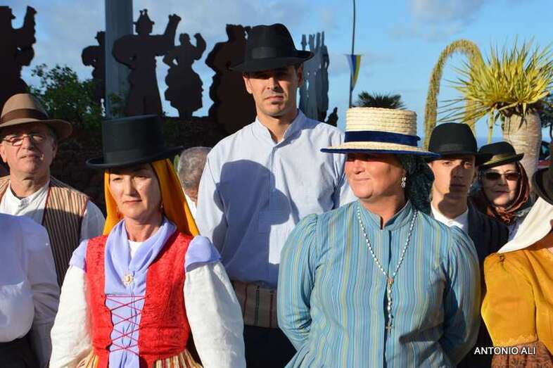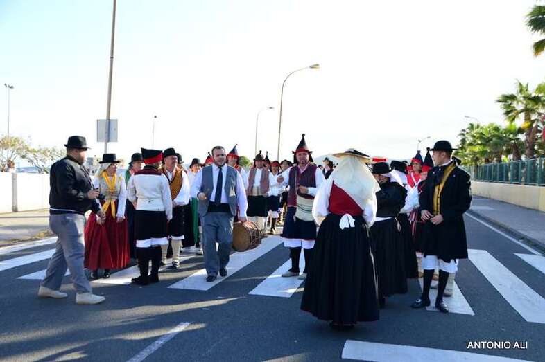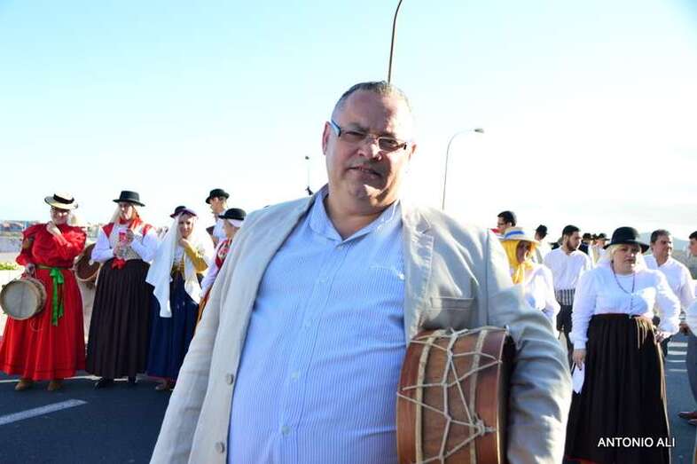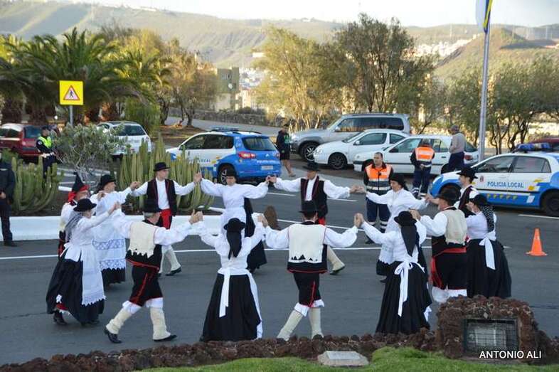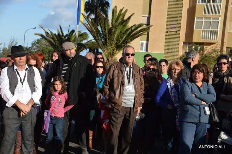 Acompañados por tambores y chácaras, y también al son de otros instrumentos tradicionales canarios, partieron todos juntos a las 17.00 horas en un concurrido pasacalles desde la sede del colectivo -en la antigua Gerencia de Jinámar- en dirección a la rotonda de la calle Lomo Las Brujas que desde hoy toma el nombre de glorieta AF Entre Amigos.