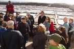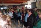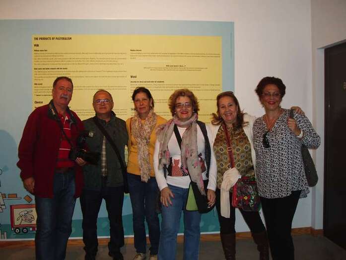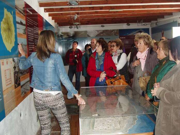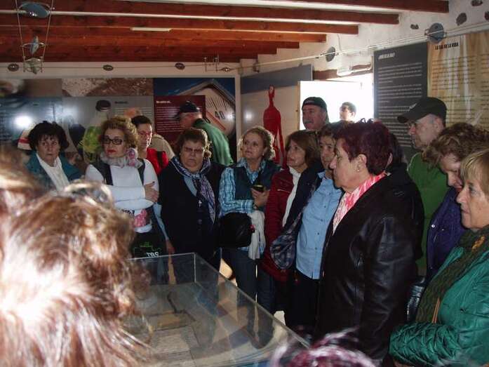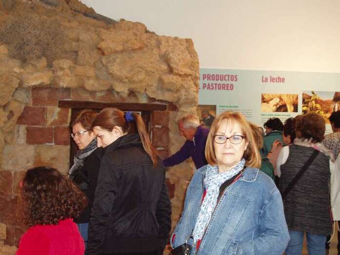 A continuación, los visitantes se trasladaron al Centro de Interpretación del Pastoreo. Allí visionaron una pieza audiovisual con las escenas más cotidianas del pastoreo -el traslado del rebaño, de cabras y ovejas, la trasquilada de estas últimas, las mañas que se daban los pastores para saltar los riscos con los garrotes, etc.- y contemplaron en diferentes paneles diversas cuestiones como los útiles del pastoreo, un zoco donde protegerse de los vientos típicos de esta zona de vecindario, una caseta con los enseres para hacer el queso, una exposición de cencerros de diferentes tamaños y sonidos distintos, muchas fotos de cabras y paneles explicativos.