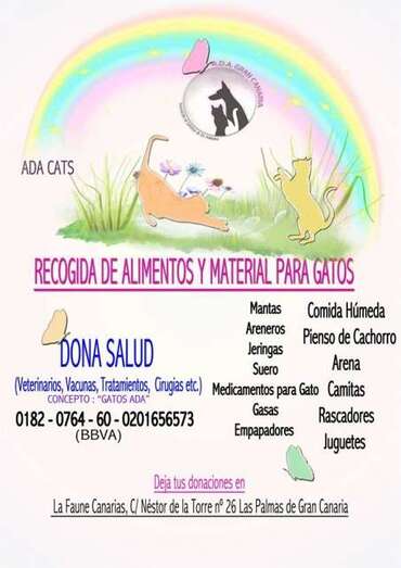 Telde.- Vecinos del Punto Fielato, en Telde, agradecen a la protectora de animales ADA Gran Canaria por ayudar, cuidar y buscar acogida a una gata que fue rescatada con importantes heridas en el barrio. También hacen un llamamiento público por si la mascota tiene dueño, ya que aseguran que es muy mansa.