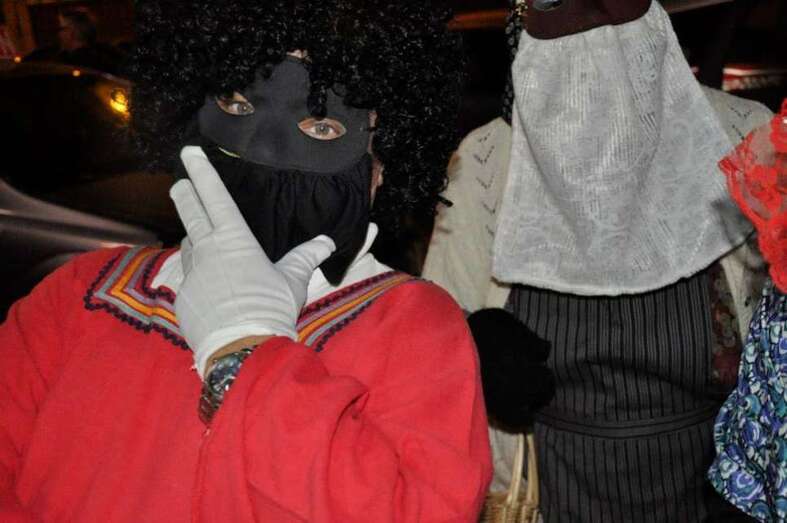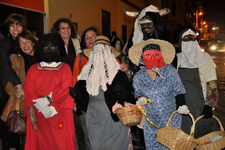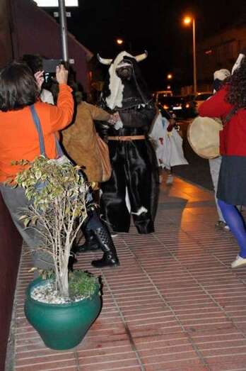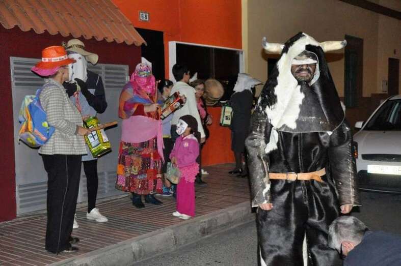 Ataviados con mascaritas elaboradas a partir de sábanas, ropas usadas, manteles, pañoletas y sacos, como se hacía antaño, los vecinos de La Pardilla iniciaron un periplo por el pueblo tocando de casa en casa. Paralelamente a este rancho de máscaras, tuvo lugar, también a las 19.30 horas, la salida de La Vaca, quien estuvo acompañada por los jóvenes de Maresía.