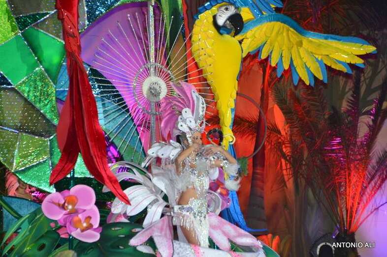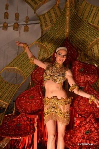 Carolina Cámara López con la fantasía “Sacrificio” del diseñador David Hernández Páez fue proclamada Primera Dama de Honor, en representación del Hotel Parque Tropical.