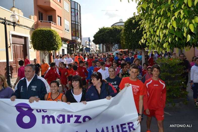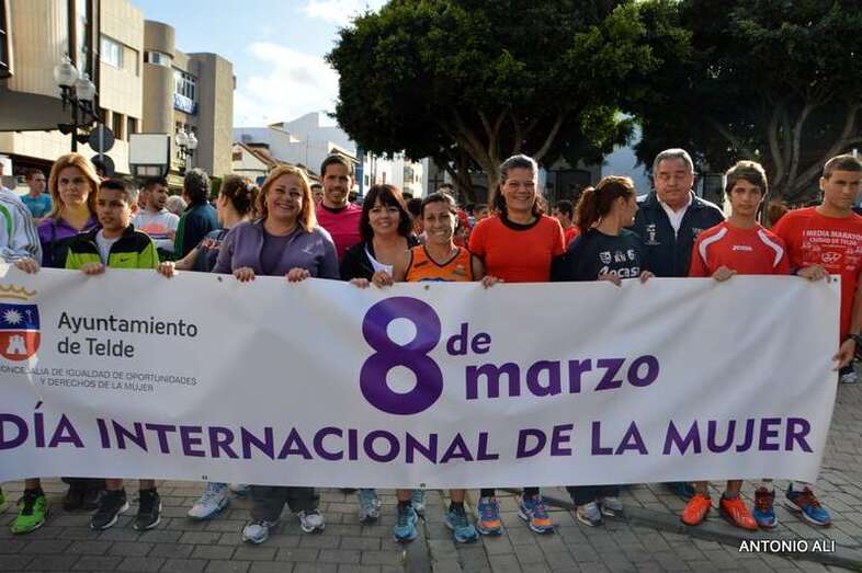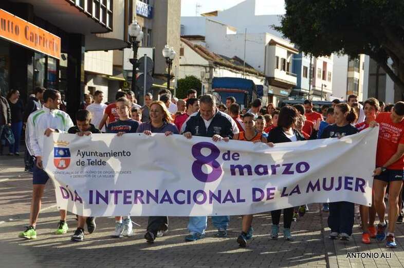 Telde.- Las calles principales del centro urbano de Telde volvieron este martes a ser testigos de la Carrera por la Igualdad que, en su quinta edición, contó con la participación de medio centenar de personas que quisieron sumarse a la actividad programada por el Ayuntamiento con motivo del Día Internacional de la Mujer. TA avanza imágenes de la carera