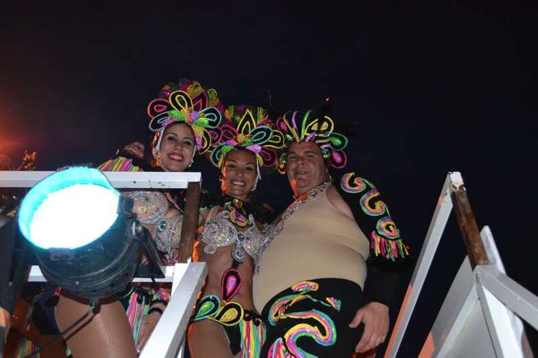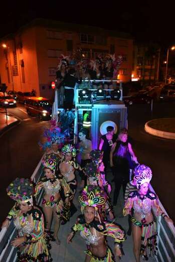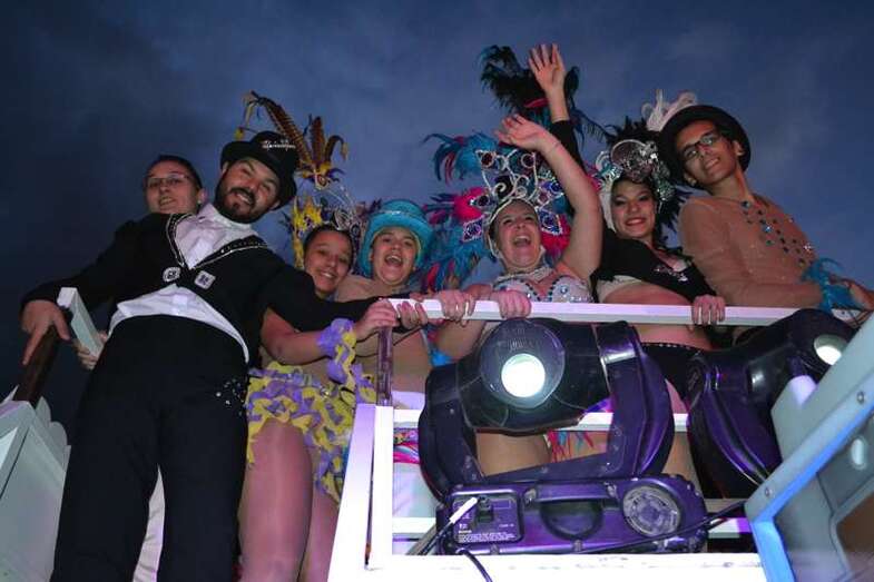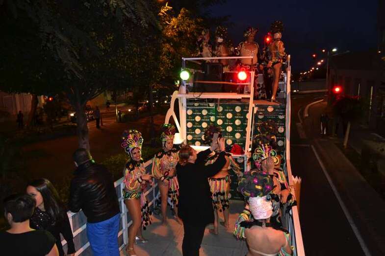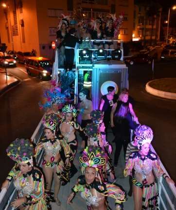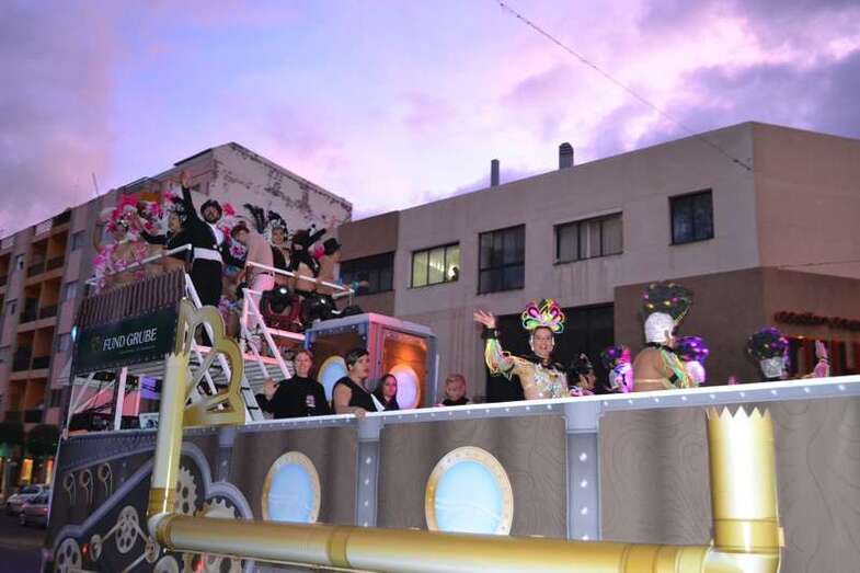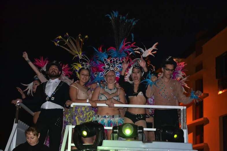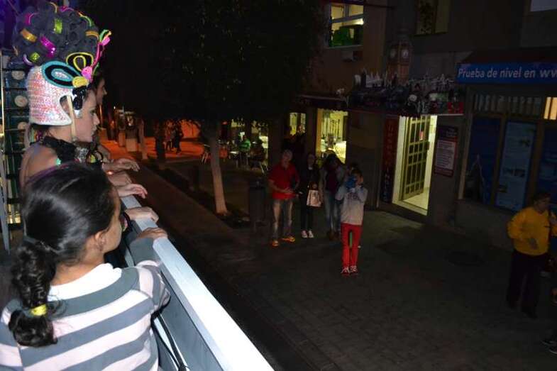 Telde.- La carroza anunciadora del Carnaval de Telde 2014 recorrió ayer tarde las principales calles del núcleo de la ciudad animando a la población a participar en los diferentes actos que la Concejalía de Festejos ha previsto para estos diez días de carnestolendas. El dejay Nacho González y las comparsas Lianceiros y Cubatao animaron el ambiente con música y bailes.