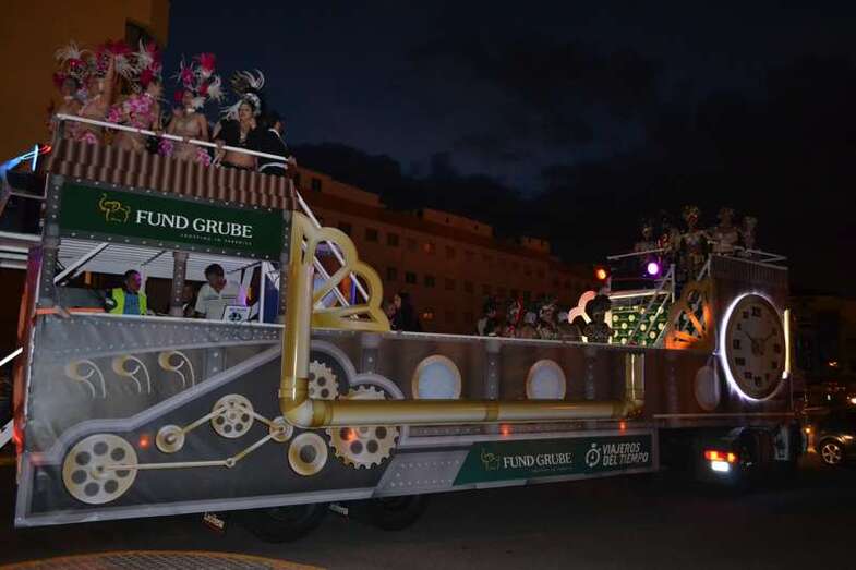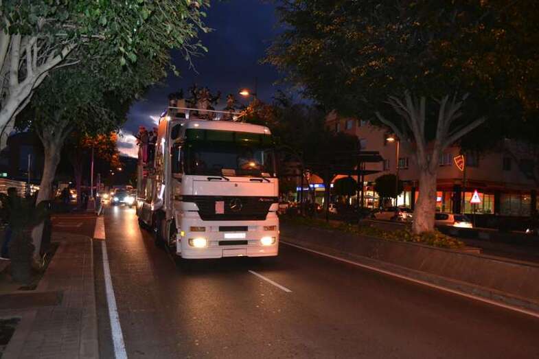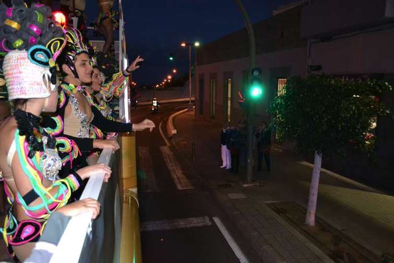 La comitiva, escoltada por la Policía Local de Telde y por efectivos de la agrupación local de Protección Civil, partió a las 19.00 desde la Rambla Pedro Lezcano y terminó su periplo en la plaza de San Juan minutos antes de que diera comienzo el
