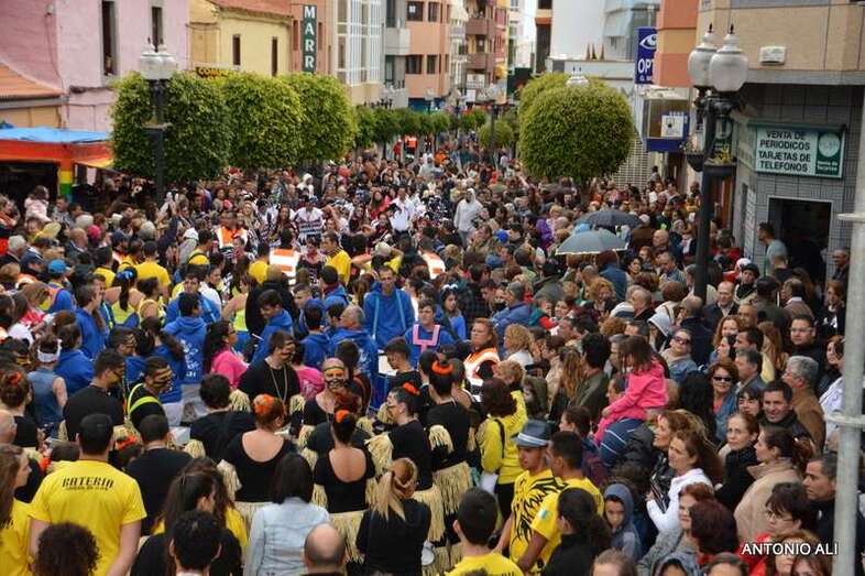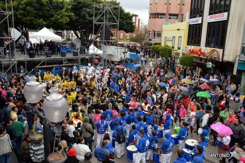 Telde.- Con mucho frio, algo de viento y una ligera llovizna, el Carnaval de Día arrancó este mediodía en la zona comercial de San Gregorio con el concurso de batucadas, comparsas, música de djs locales y la actuación de varios cantantes y orquestas como Pepe Benavente y Tamarindos, entre otros.