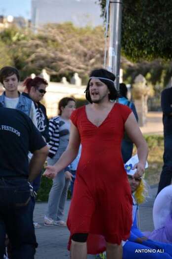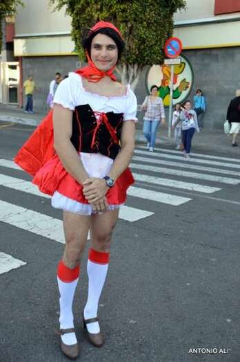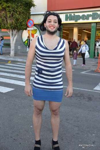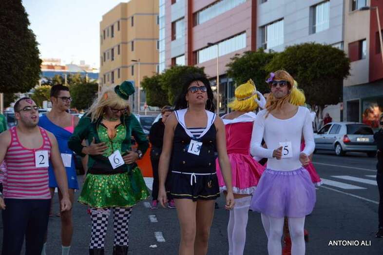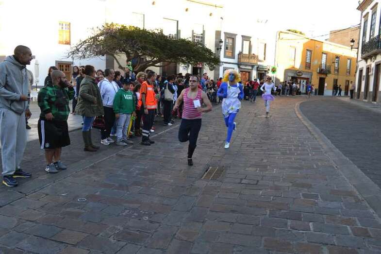 Telde.- Gerardo Domínguez, con el dorsal número 5, acaba de ganar la sexta carrera de tacones que se celebra en Telde, en el marco de las fiestas de carnaval, con un largo recorrido por un circuito que se inició en el sector de Arnao (calle de Farmacéutica María del Pino Suárez López) y finalizó en el Auditorio José Vélez del parque urbano de San Juan, después de un periplo por varias calles del casco histórico.