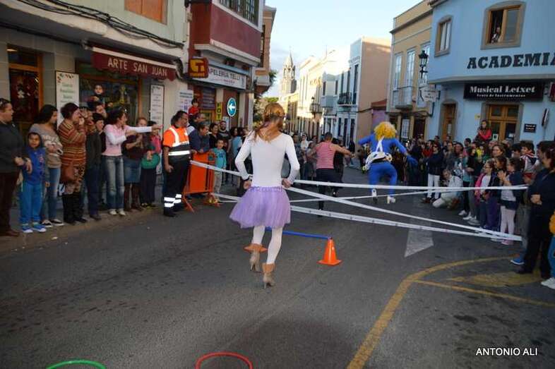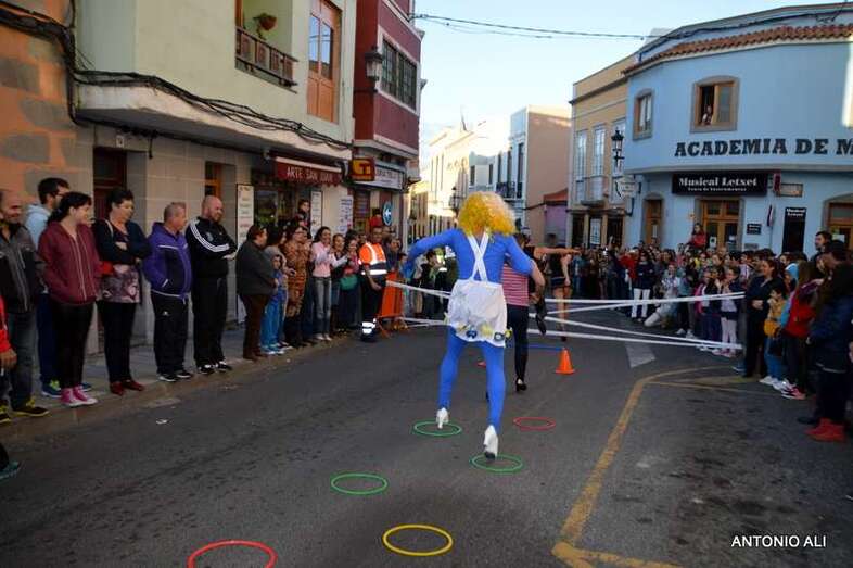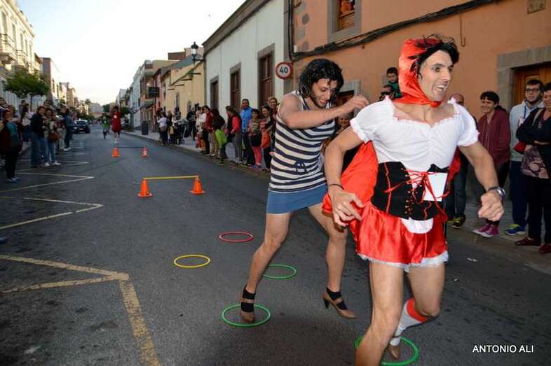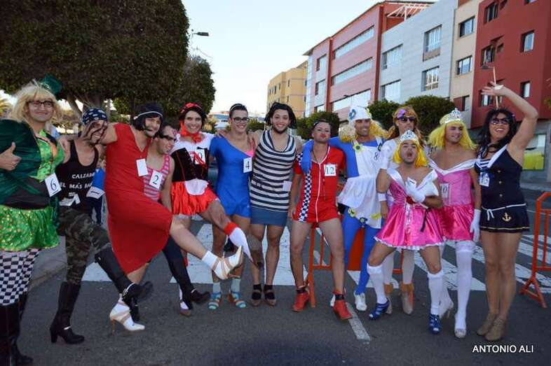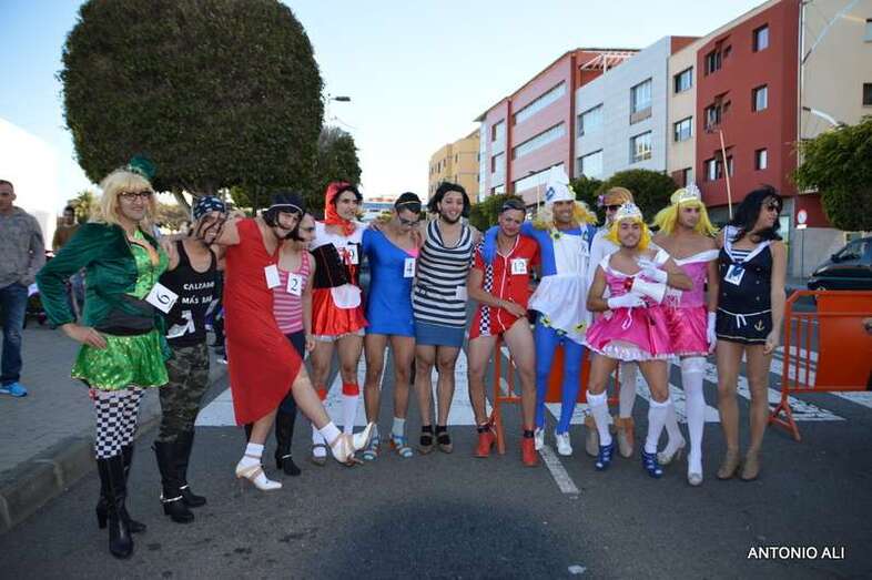 La carnavalera prueba contó con 13 de los 16 inscritos, todos varones, que se arriesgaron en este singular recorrido de un kilómetro con con tacones con una medida mínima de 7 centímetros. En definitiva, fue una competición de altura muy divertida en la que resultó ganador Gerardo Domínguez López, médico en paro, vecino de Lomo Cementerio y ataviado con un tutú azul. El segundo clasificado fue Miguel Echedey Santos Rodríguez, dorsal número 1, que vestía la fantasía Rambos de altos vuelos, y en tercer lugar llegó Echedey Jesús Vera López, dorsal número 8, que portaba una alegoría pitufa.