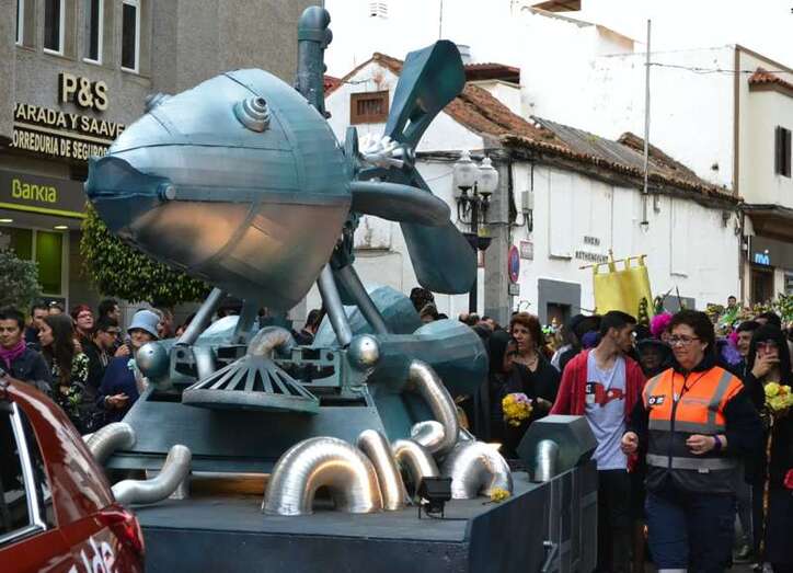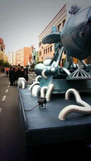 Telde.- La Sardina más galáctica de la historia del Carnaval de Telde, un especie de artilugio mecánico espacial, culminó este domingo última procesión desde San Gregorio hasta el parque Urbano de San Juan, donde sería incinerada, acompañada de cientos de personas y del cortejo fúnebre más divertido y concurrido de los últimos años.