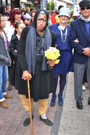 La nota de humor la pusieron dos jóvenes disfrazados de abuelitas dolidas que llamaron la atención durante todo el recorrido por sus ocurrencias y escenificaciones.