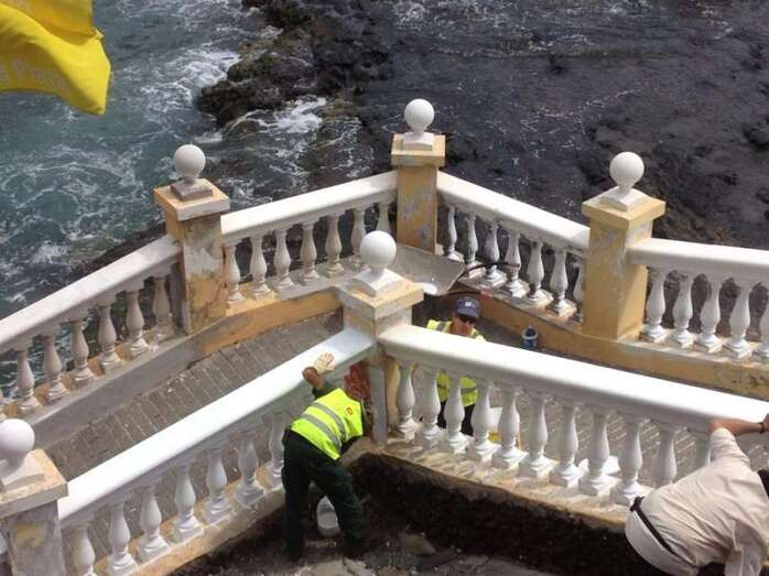 Concretamente, las actuaciones realizadas en la playa de Melenara, con una cuadrilla compuesta por operarios del Ayuntamiento de Telde y del Cabildo de Gran Canaria, han consistido en remediar los desperfectos ocasionados por el temporal acondicionando el acceso sur de la playa y de la Charca Pérez, y arreglando las balaustradas con trabajos de pintura y albañilería; cambiando las papeleras en diferentes puntos; adecentando los mástil de las banderas indicativas; reubicando las duchas de la playa; y adecentado los parterres de jardinería.
