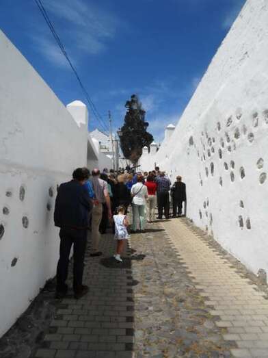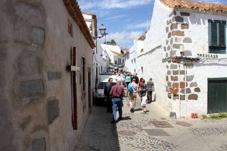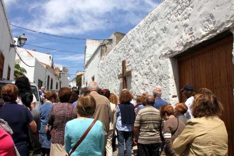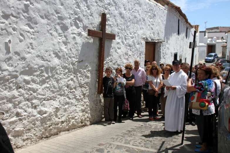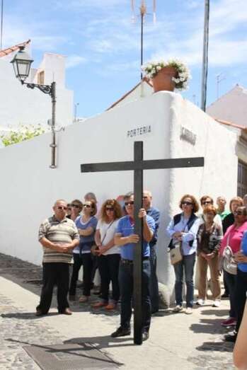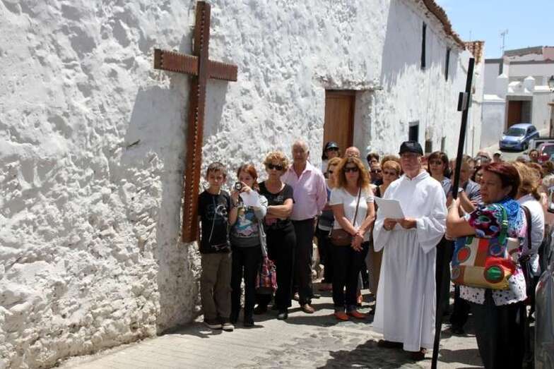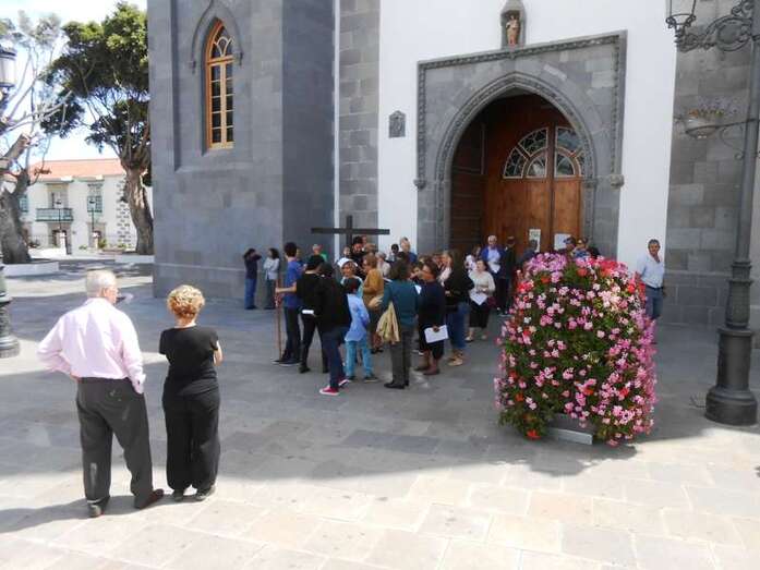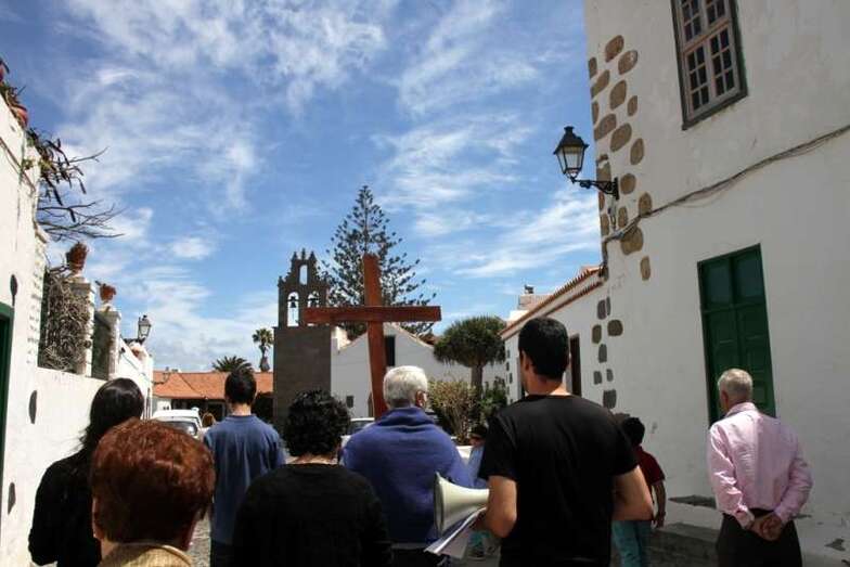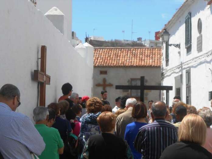 El Vía Crucis en San Francisco, después de ofrecer las oraciones, plegarias, lecturas en el silencio de un luminoso cielo, en el precioso entorno de este blanco de fachadas de seculares historias, paredes, muros, casas, techumbres y arquitectura conventual de recogimiento franciscano, como bien reflexiona el Cronista Oficial de Telde en su obra: De Telde para el recuerdo…(1985-2007): “al recorrer una y otra vez las angostas y empinadas calles del barrio conventual de San Francisco de la ciudad de Telde, podemos percibir la perenne quietud de su historia. Cada guijarro en función de improvisado adoquín, canta los nombres de sus calles. Calles de San Francisco lugares para el recuerdo y la añoranza. Paz y melancolía, murmullo de acequias, céfiros peinantes del rico platanal. Rezos y murmullos en las cruces de madera que adornan las fachas de sus casas, restos del vía crucis penitencial de sus antiguos frailes moradores……”