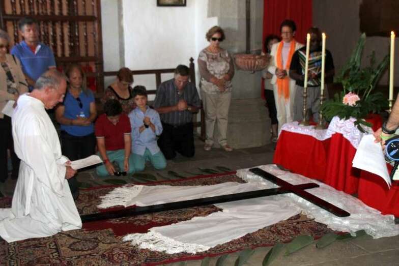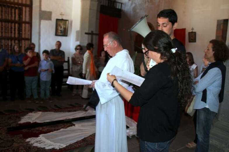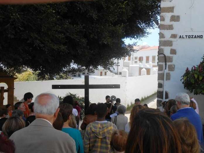 Llegados a la iglesia conventual al abrigo de las cruces que han acompañado a la comitiva en manos de jóvenes, D. José María Cabrera en una última oración ante la Cruz salvadora, reza: El Vía Crucis no termina en la Cruz o en el sepulcro. En el sepulcro queda para siempre la muerte y el odio. Pero triunfa la vida y el amor. El sepulcro es el lugar donde los poderes de este mundo creen alcanzar dominio absoluto sobre los enemigos. Piensan que con enterrarlos, ya todo se acaba. Pero el sepulcro de Jesús es nuevo y está en un huerto o jardín que, en la Biblia, es el lugar de la vida. Los que, como Jesús y con él, son sepultados, pasan al Padre a recibir vida plena. Son las semillas que, al ser enterradas, rompen la tierra y crecen.