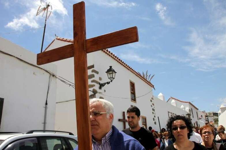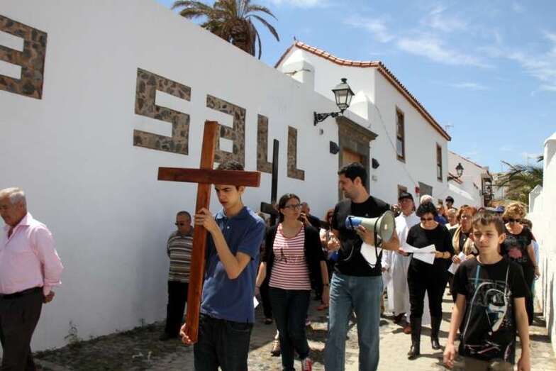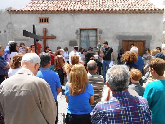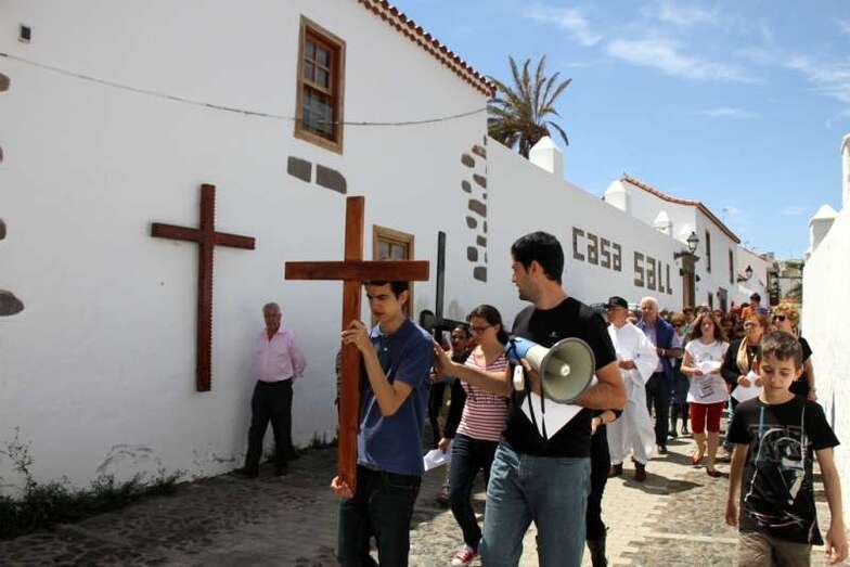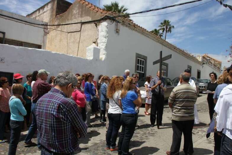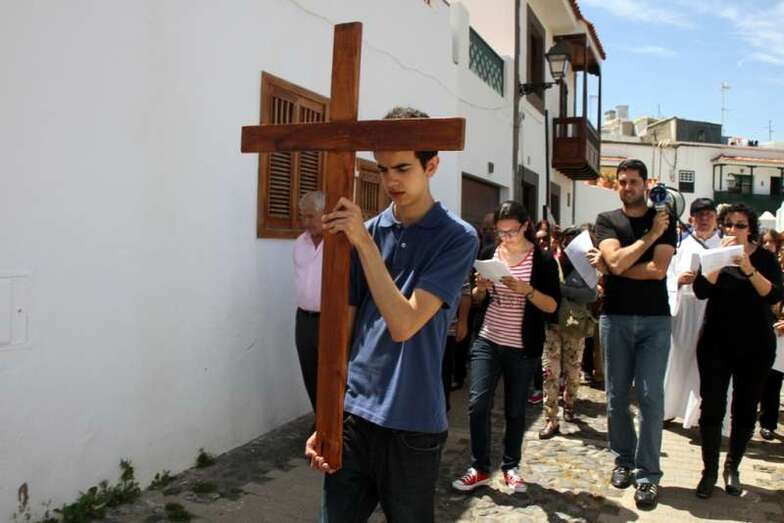 Telde.- El emblemático barrio conventual de San Francisco en Telde fue recorrido en sus principales calles por los jóvenes que celebraban el Vía Crucis 2014, la mañana del Viernes Santo, 18 de abril, dirigidos por José María Cabrera Pérez, párroco de San Juan.
