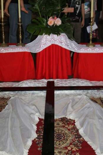 el Cristo parece temblar bajo la tenue luz, ellos piden.