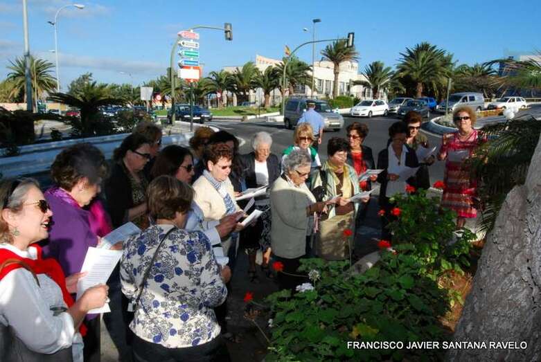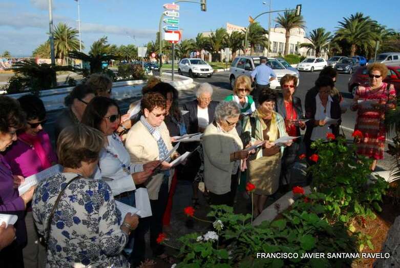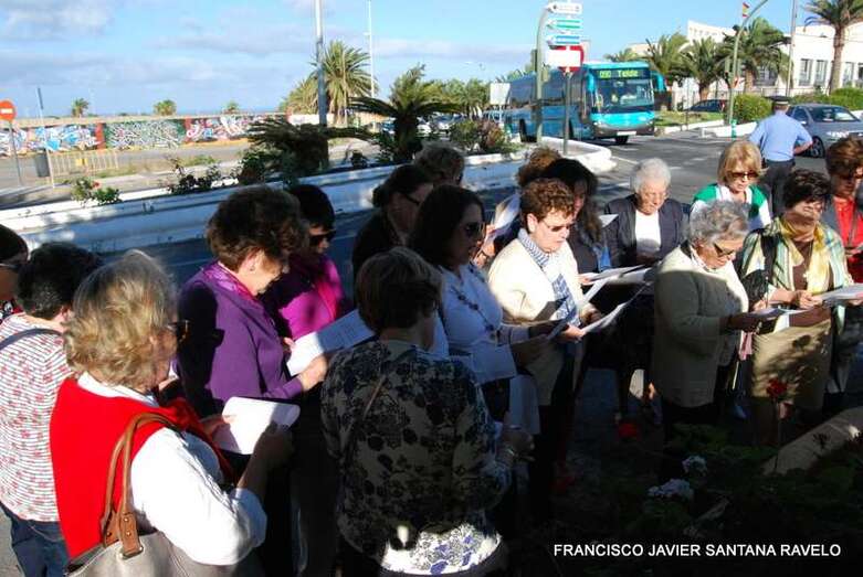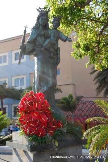 Telde.- Un grupo de antiguas alumnas del Colegio María Auxiliadora de Telde conmemoró este martes el noveno aniversario de la colocación de una escultura de la Virgen en la entrada a la ciudad, en una pequeña zona ajardinada situada a la altura de la Fuente de Telde y del IES José Arencibia Gil. TA ofrece reportaje gráfico.