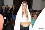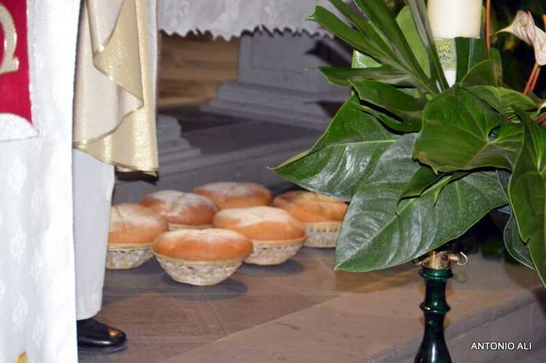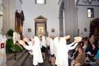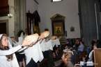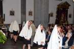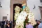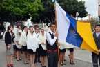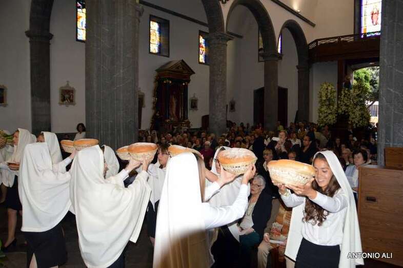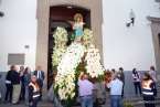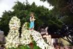Tras la eucaristía oficiada a partir de las 19.00 horas por el párroco Luis Marrero en el interior del templo neoclásico del barrio, el trono y su comitiva inició su marcha al filo de las 20.13 horas, en la que llamó poderosamente la atención la vistosidad de los trajes de los participantes y las grandes banderas que estos portaban.