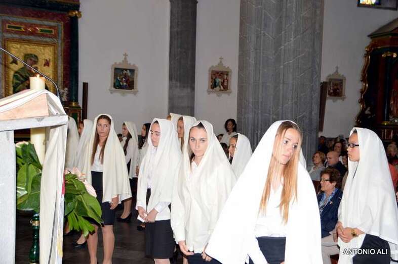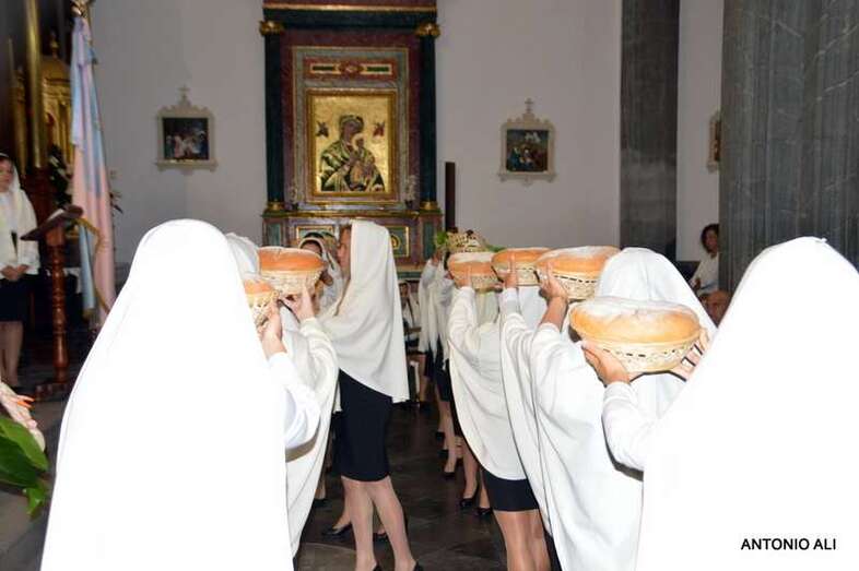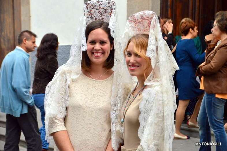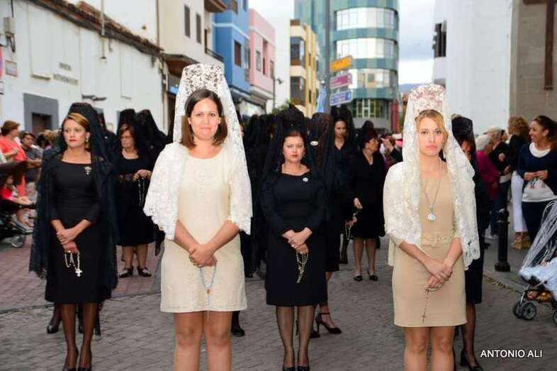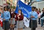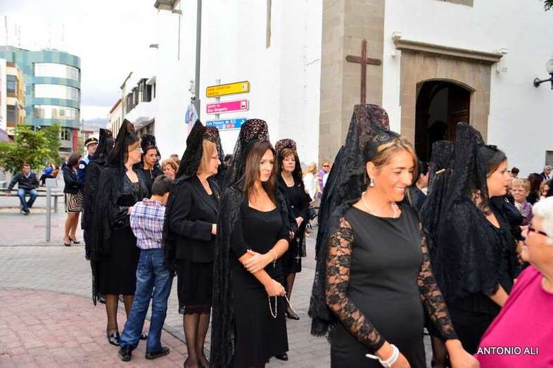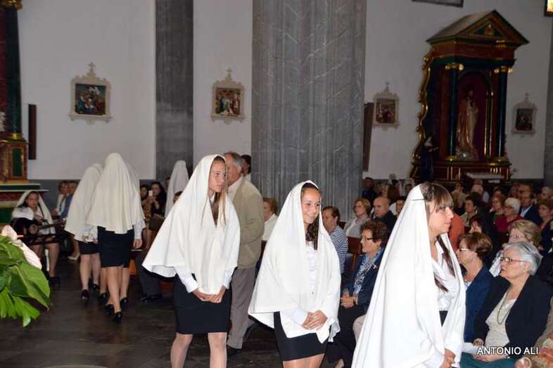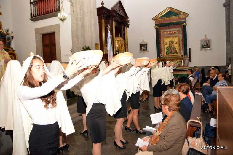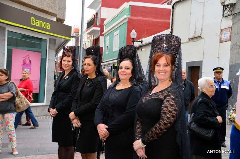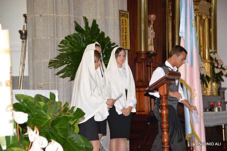 Con sus estandartes y banderas, la comitiva religiosa que organiza anualmente la comunidad salesiana de Telde desde más de 60 años, abrió sus puertas en 1949, contó con el acompañamiento de cientos de devotos y de alumnos del colegio, además de por más de 50 mantillas de varias generaciones.