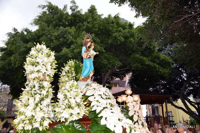 Telde.- La tradicional procesión de María Auxiliadora recorrió este sábado, 24 de mayo, las calles de San Gregorio, tras la misa que tuvo lugar en el templo neoclásico de Los Llanos de Telde a partir de las 19.00 horas.