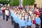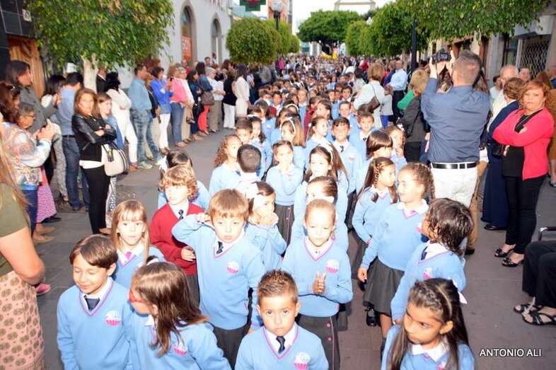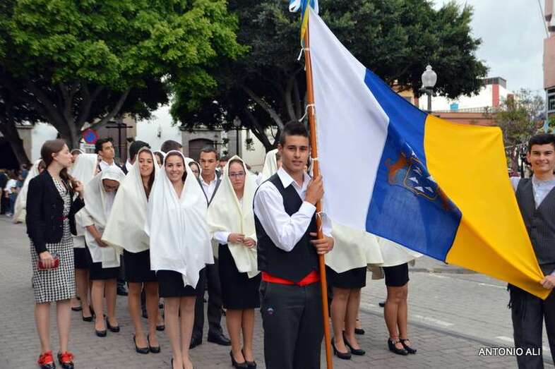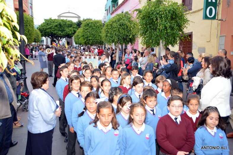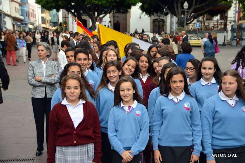Como ya viene siendo tradicional, el trono estuvo acompañado en su paseo por las autoridades locales, la Banda Municipal de Música y, sobre todo, por los cerca de 700 alumnos que actualmente tiene censados este centro privado concertado que goza de gran prestigio en la isla.