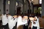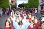 Con el aderezo de los cánticos de los niños y la ayuda y constante vigilancia del cuerpo de profesoras y religiosas que forman parte del cuerpo docente del colegio, el trono de la imagen bellamente adornado con antulios blancos ejecutó el mismo trayecto que ha venido realizando en las últimas décadas por el entramado de calles del núcleo urbano de San Gregorio.