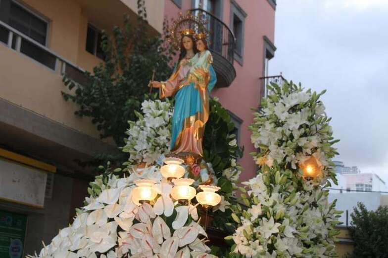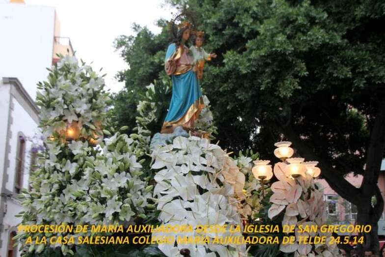 Una procesión muy ligada a la tradición religiosa teldense que anualmente cumple con las gentes devotas en la advocación a la celebración de María Auxiliadora que, desde la iglesia de San Gregorio Taumaturgo, regresa en su trono, bellamente engalanado, hasta el Colegio Salesiano de María Auxiliadora, en un recorrido procesional por el casco urbano y peatonal del barrio de Los Llanos de San Gregorio.