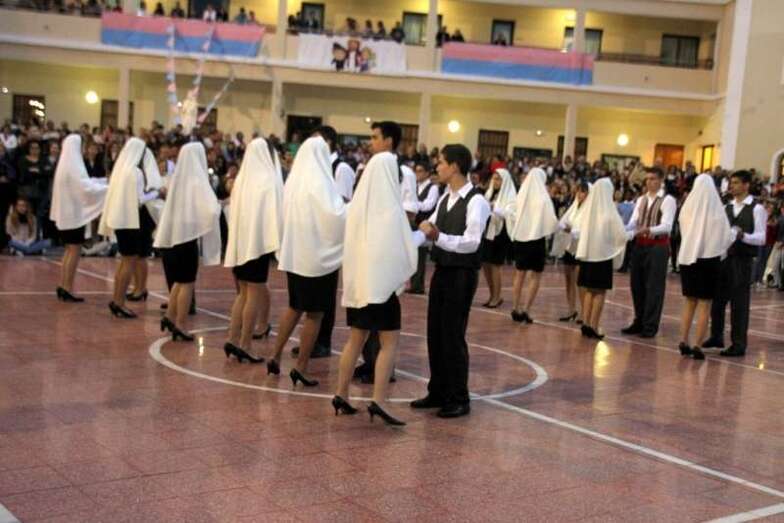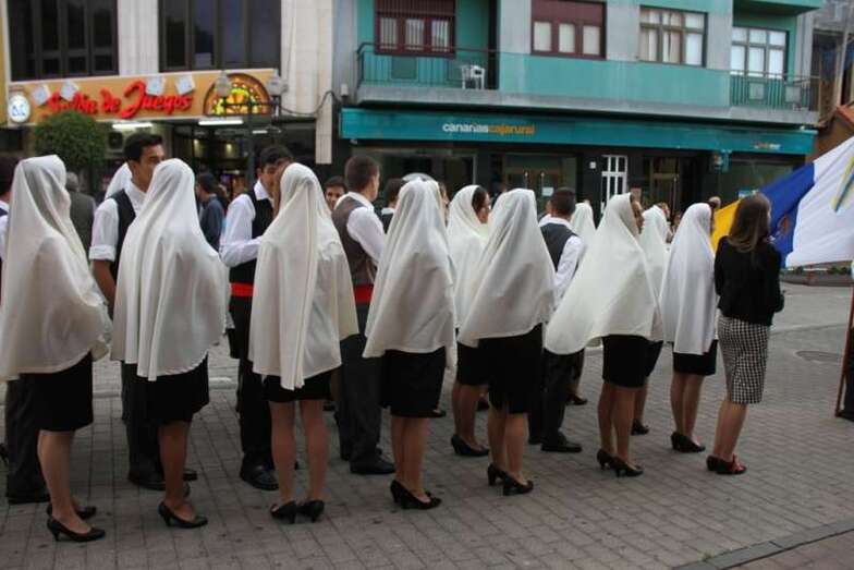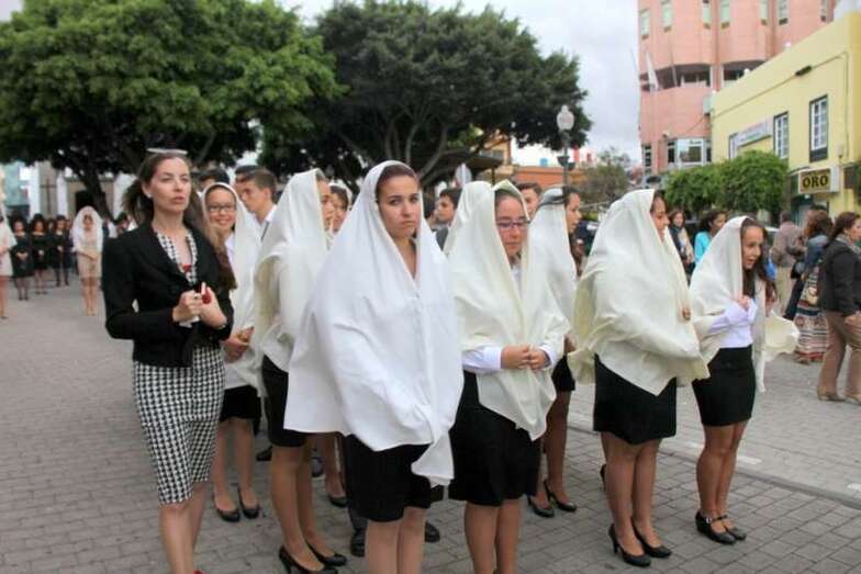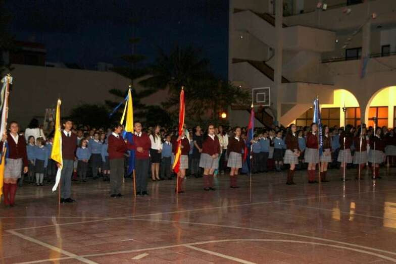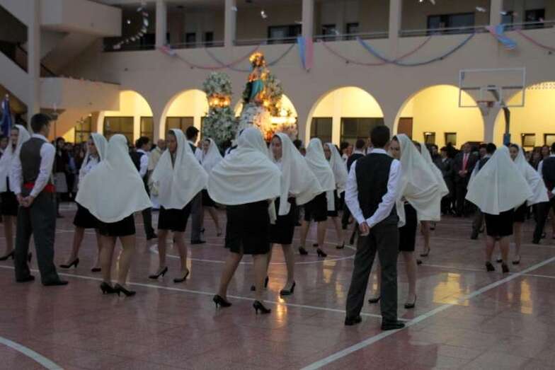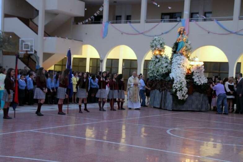 Alumnos y alumnas de tercero de la E.S.O. bailaron un tema musical popular canario, ante el trono de la Virgen y finaliza la celebración con la interpretación del Himno a María Auxiliadora por la Banda Municipal de Música de Telde acompañada de las numerosas voces de la multitud que congregó a un público devoto de María Auxiliadora, que llenaban el patio, corredores, antiguas alumnas, familiares de los escolares, y fieles a la advocación a la Señora, que cada año se dan cita para asistir a los actos religiosos, novena, misa, procesión, regreso al Colegio Salesiano y despedida.