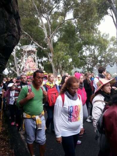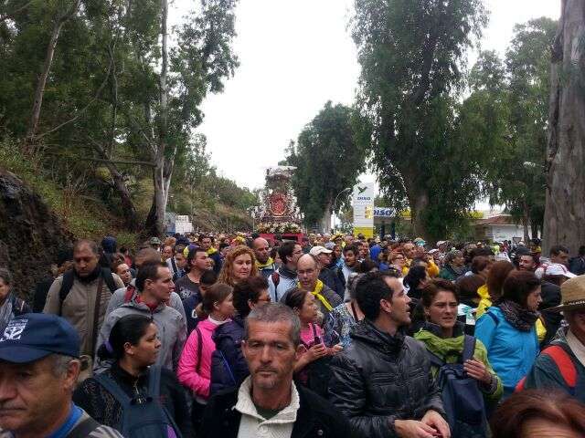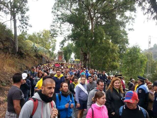 Miles de personas peregrinan bajo una fina lluvia desde primera hora de la mañana desde Teror hacia Las Palmas de Gran Canaria junto a la Virgen del Pino, retomando la tradición centenaria de "bajar" a la Patrona de la isla a la catedral, un acontecimiento que no se producía desde el año 2000.