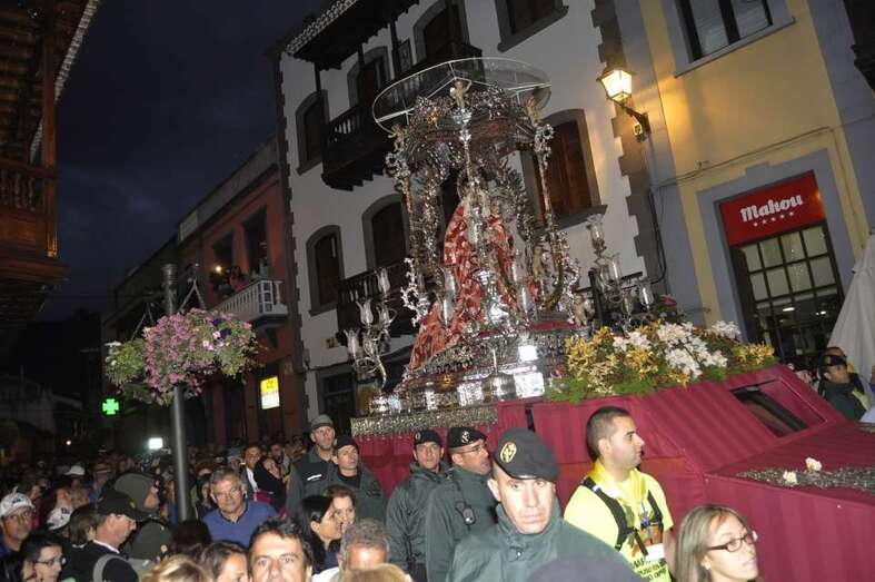 La imagen de la Virgen del Pino baja a la catedral de Santa Ana, donde permanecerá 15 días, para conmemorar sus cien años como Patrona oficial de Gran Canaria, condición que los fieles de la isla ya le habían otorgado oficiosamente muchos años antes.