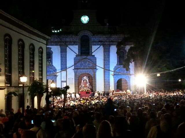 La imagen de la Virgen salió de su basílica a las 5.20 horas para presidir una misa en su honor oficiada por el obispo Francisco Cases ante una plaza repleta de fieles y engalanada con banderas de Canarias, pañuelos de la Patrona y pendones en numerosas ventanas.