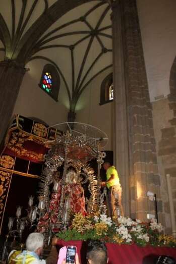 Telde.-TELDEACTUALIDAD ofrece a sus lectores crónica y reportaje gráfico del colaborador Jesús Ruiz Mesa sobre la llegada a la Catedral de Santa Ana del trono que porta a la Virgen del Pino, bajada en procesión multitudinaria desde la Villa de Teror.