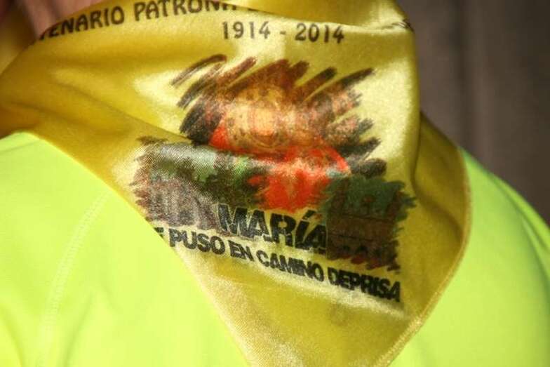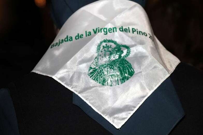 Pañuelos amarillos, camisetas y gorros, con el lema de María se puso en camino deprisa, con su imagen, la de la Basílica de Teror de salida y la Catedral de Santa Ana, de llegada, y Centenario Patrona de la Diócesis de Canarias 1914-2014. Pañuelos en tonalidades verdes Bajada de la Virgen del Pino 2014. La última bajada de la Virgen tuvo lugar en el 2000, por lo que se cumplen 14 años desde aquella fecha, cumpliéndose esta vez el centenario de su declaración por el Vaticano como Patrona de la Diócesis de Canarias. En esta ocasión del 2014 se cumplen las 51 bajadas de Nuestra Madre y Señora la Virgen del Pino.