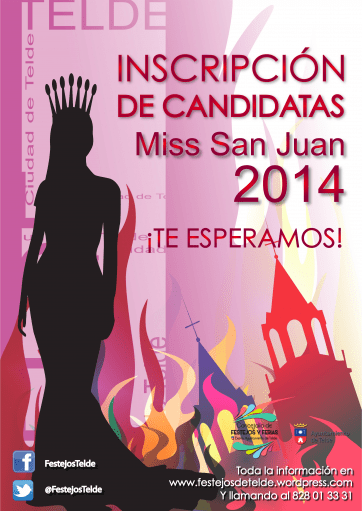 Telde.- La Concejalía de Festejos del Ayuntamiento de Telde continúa desvelando a cuenta gotas los detalles de las fiestas patronales de San Juan 2014. El departamento que dirige Agustín Pérez ha confirmado a través de las redes sociales que las celebraciones de este año contarán con un novedoso certamen de belleza en el que se elegirá a Miss San Juan, además de una Noche Canaria en la que, por el momento, ya han confirmado su participación 10 agrupaciones.