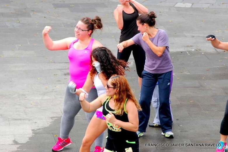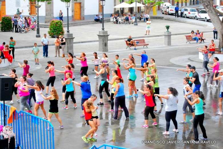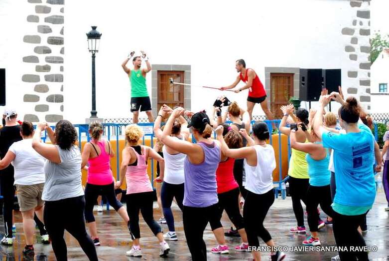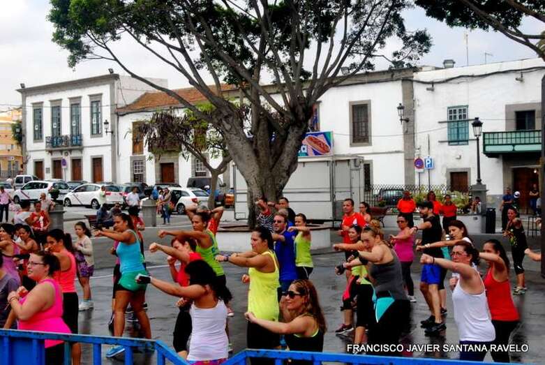 Telde.- La plaza del conjunto histórico de San Juan acogió este sábado una magistral Master Class de Zumba, Body Combat y Body Balance dirigida por los monitores teldense Lucía Santana, Maica de Paz y Yeray Ojeda, un evento enmarcado en las fiestas patronales de la ciudad. TA ofrece reportaje gráfico.