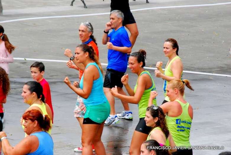 La actividad organizada por la Concejalía de Festejos y Ferias que dirige el edil Agustín Pérez comenzó con puntualidad británica a las 11.00 horas con la clase de Zumba a cargo de Lucía Santana, que dio mucha caña a las seguidores de este baile que se dieron cita en el recinto público de San Juan y a los que una lluvia de agua con una manguera les refrescó el cuerpo en una jornada con un fuerte calor.