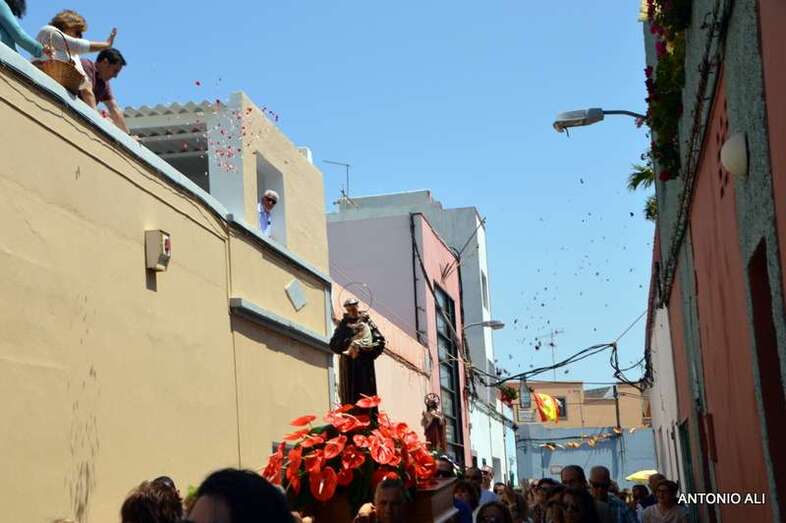 Telde.- El núcleo poblacional de San Antonio finalizó este domingo sus fiestas patronales en honor del santo de Padua con una solemne misa canaria en la plaza del barrio, oficiada en la plaza pública por el párroco de la Basílica, José María Cabrera, y, a continuación, la procesión de sus patronos con el recorrido de costumbre.