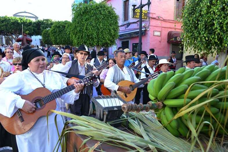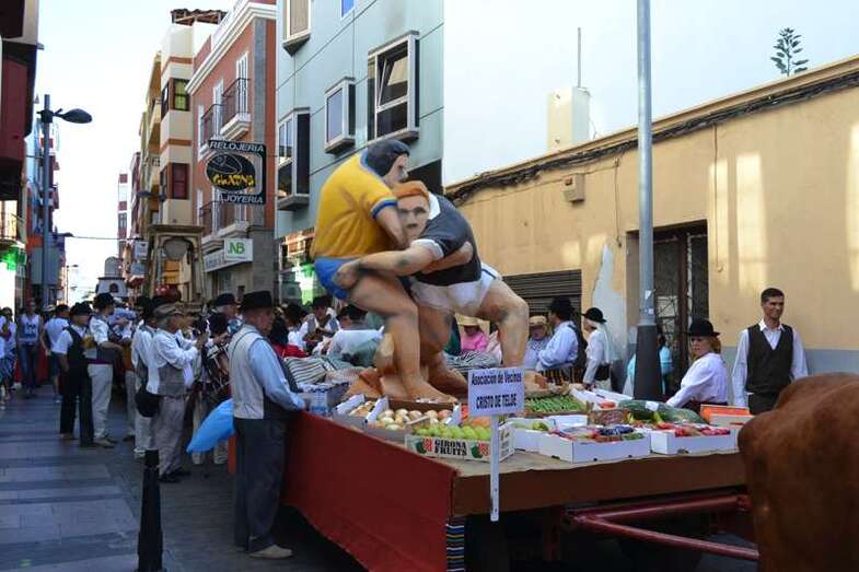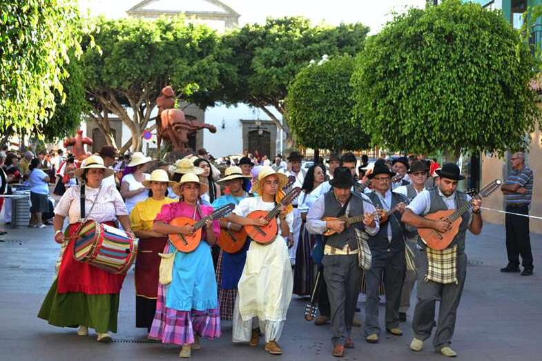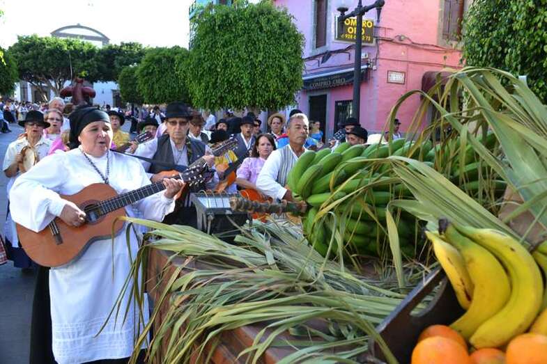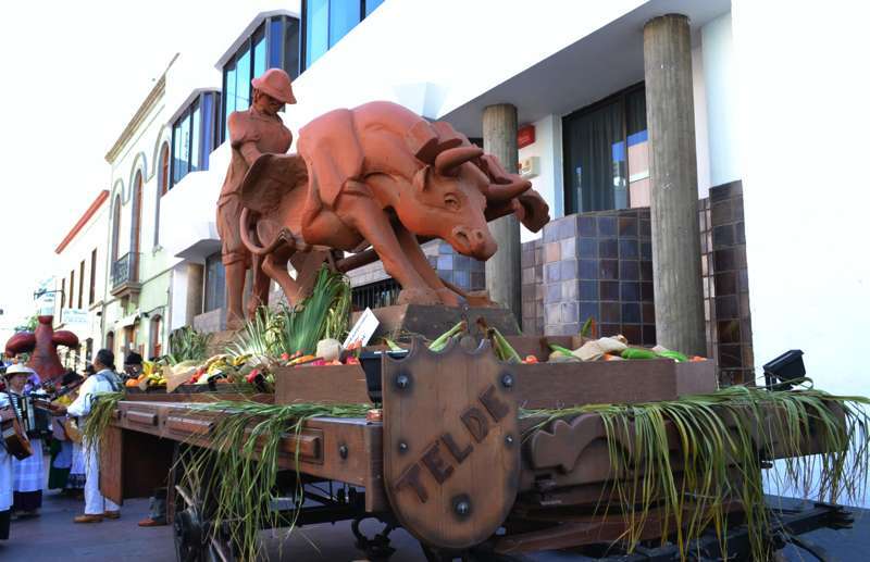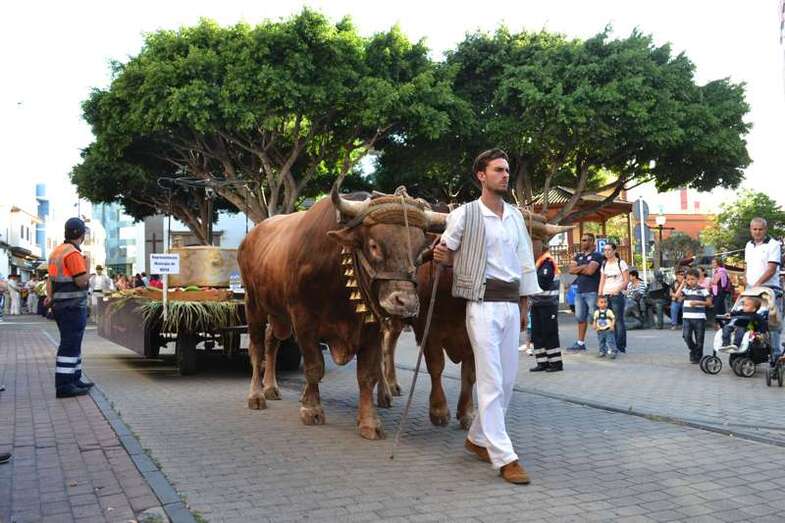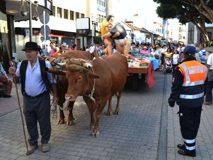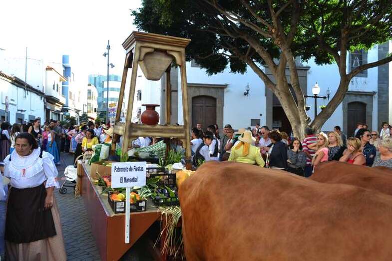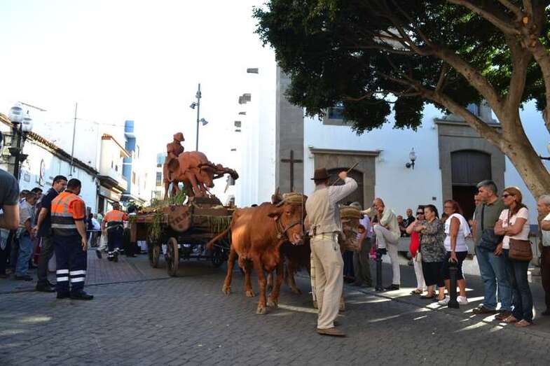 Le seguía el carromato homenaje al sector primario que el Ayuntamiento de Telde llevó el pasado año a la romería del Pino de Teror. Tras la carreta representativa de la Institución municipal desfilaban nueve más de diferentes colectivos del municipio y de otras localidades de la Isla, todas ellas cargadas con productos de la tierra. Entre carroza y carroza, los grupos folclóricos y las rondallas, con sus bailes y sus canciones, dan un toque de animación al recorrido.