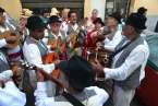 Este año el patrón recibió la ofrenda a las puertas del templo, y no al pie de la plaza, como años atrás. Festejos exigió que en ese punto los participantes fueran ataviados de típicos.
