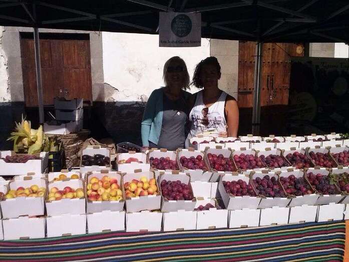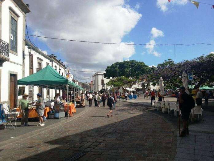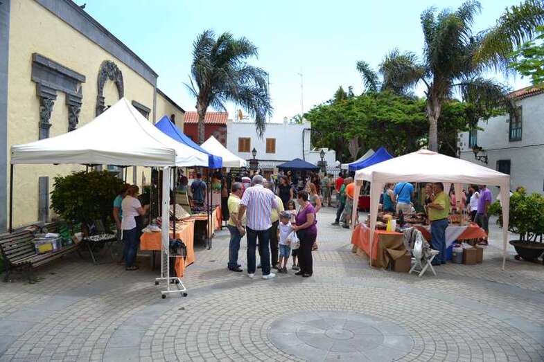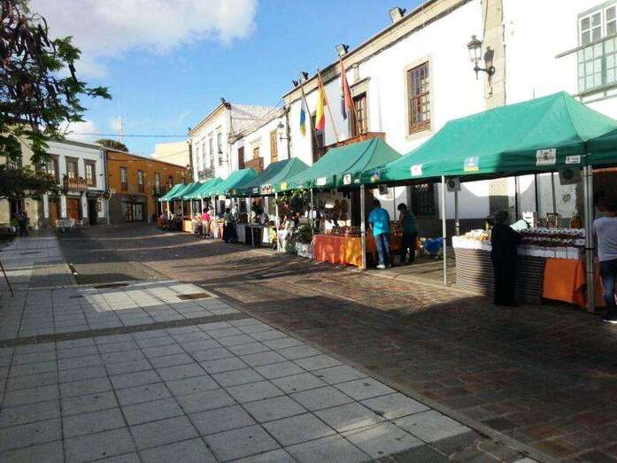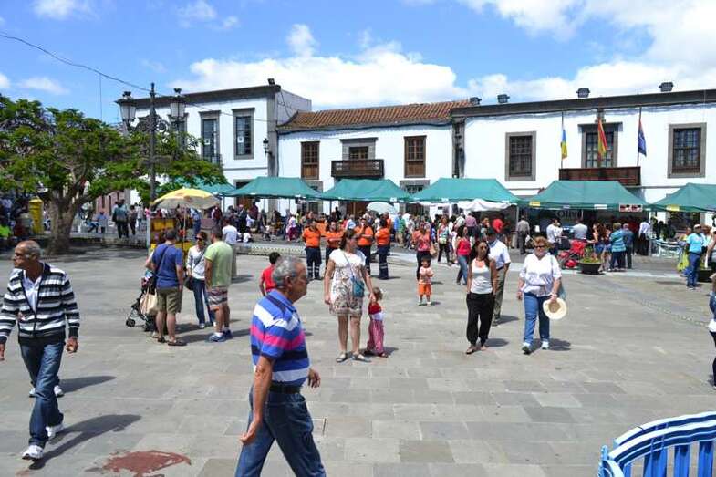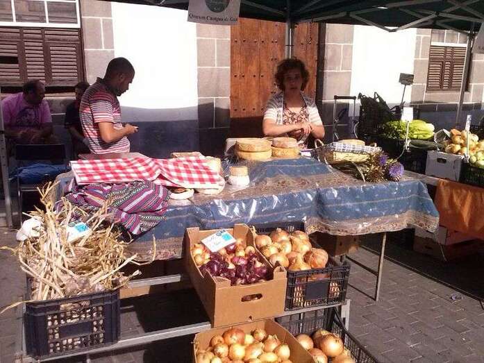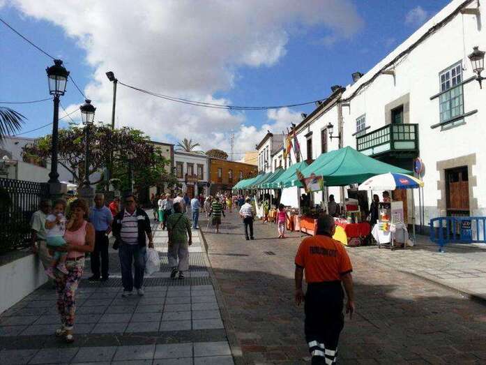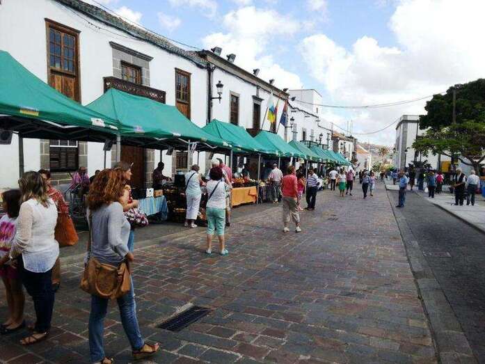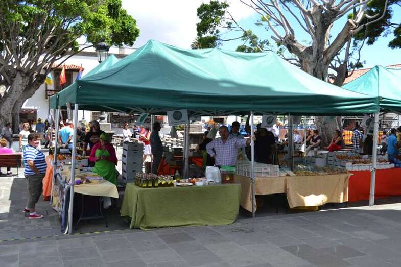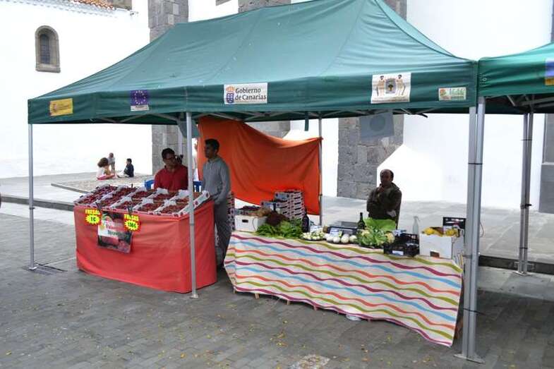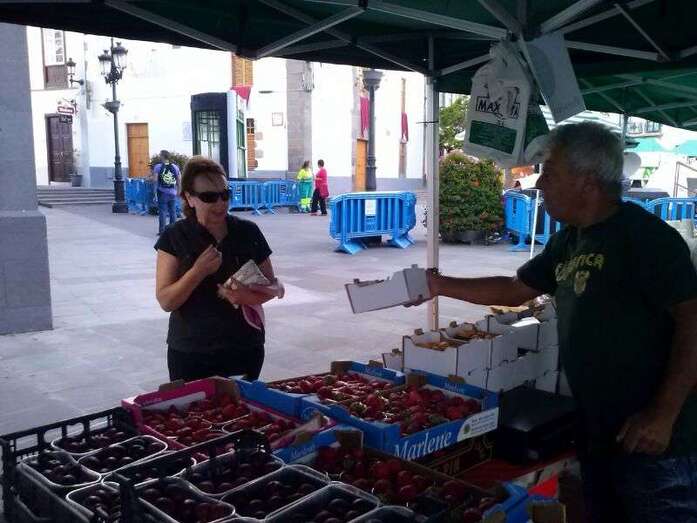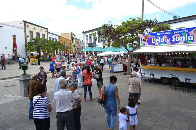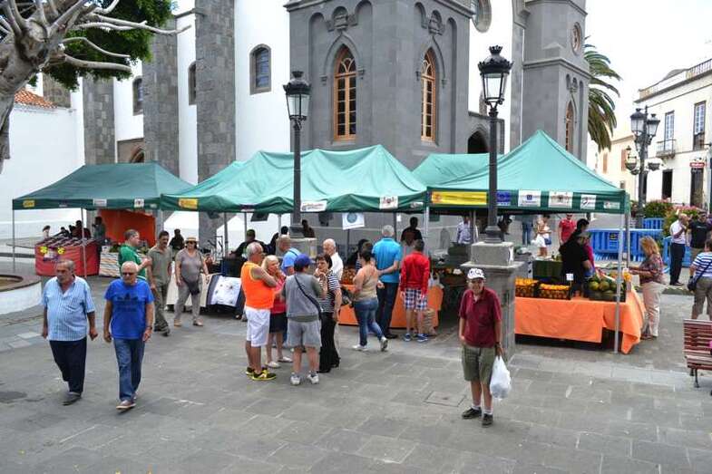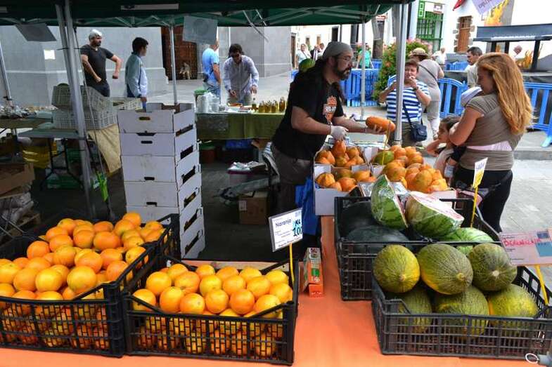 Uno de los platos fuertes es desde primeras horas el mercado agrícola, ganadero y pesquero de Canarias, que se desarrolla a lo largo de la calle de Juan Carlos I y hasta la plaza de San Juan. Abrió a las 10 de la mañana y ofrecerá sus productos del país hasta las 2 de la tarde.