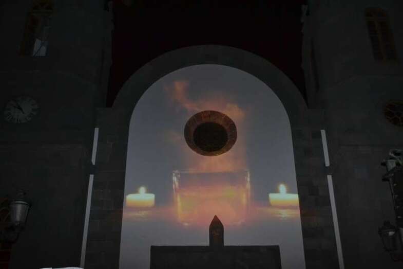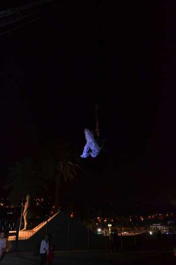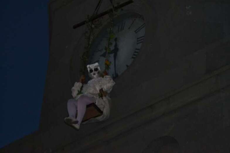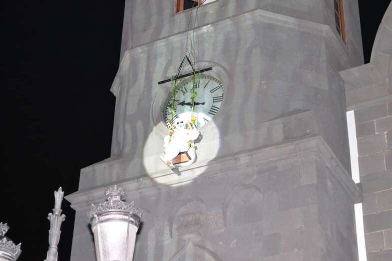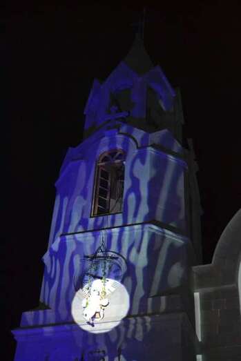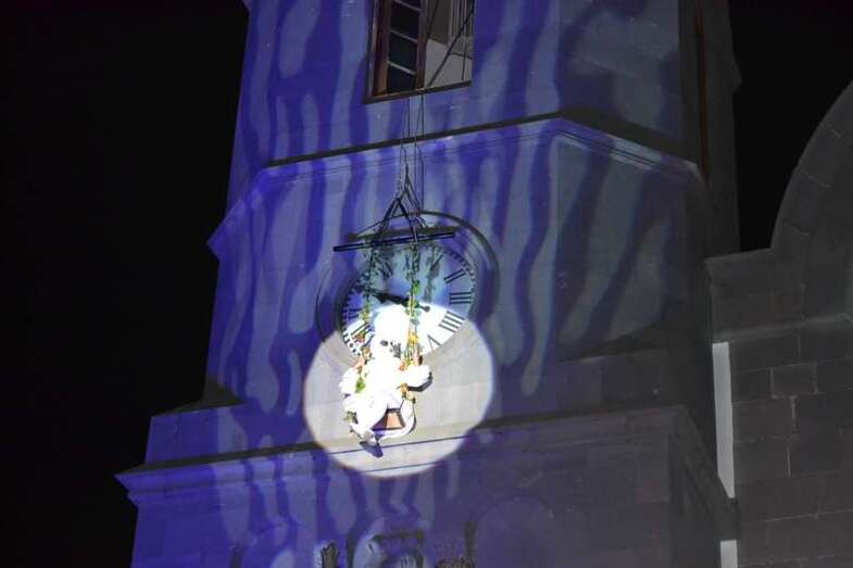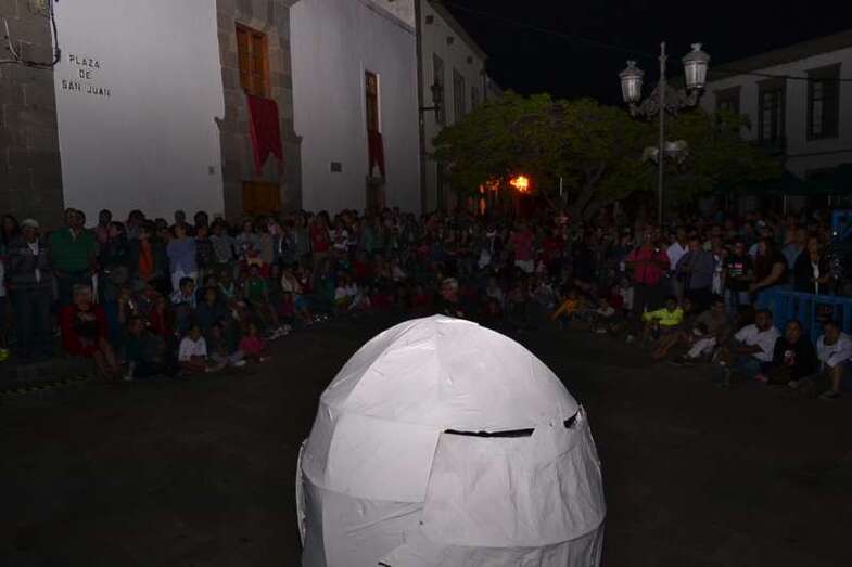 Todo ello ambientado con unas piezas audiovisuales proyectadas sobre la fachada del templo por la empresa teldense Sonimac. Poco a poco la obra se fue trasladando calle abajo y tras varias escenificaciones que continuaron sembrando el miedo entre los espectadores finalizó minutos antes de las doce de la noche a los pies del Barranco Real de Telde, en donde Felipe Salas ardió prendiendo la hoguera de San Juan.
