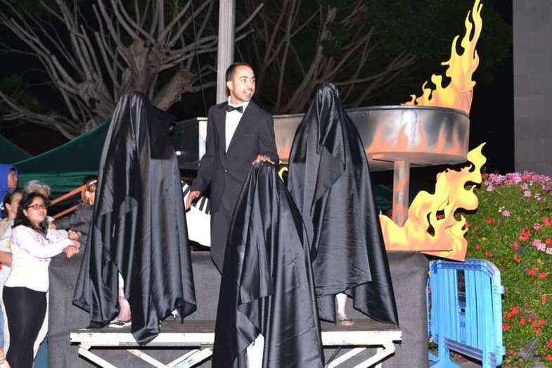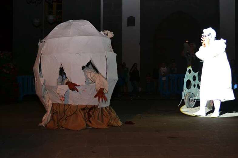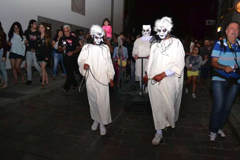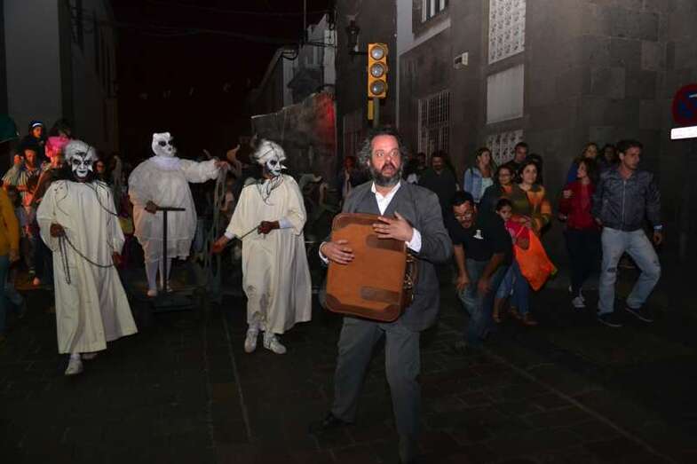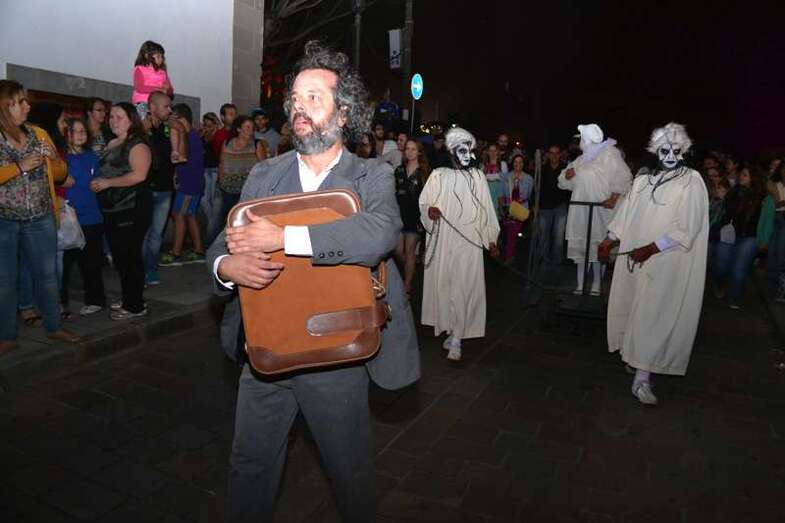 Telde.- El misticismo y el terror se apoderaron esta noche de las calles del núcleo fundacional de Telde. Cerca de cinco millares de personas disfrutaron de la víspera de San Juan con un espectáculo teatral que se inició en la plaza del barrio y que finalizó al abrigo de la tradicional hoguera en el Barranco Real.