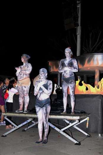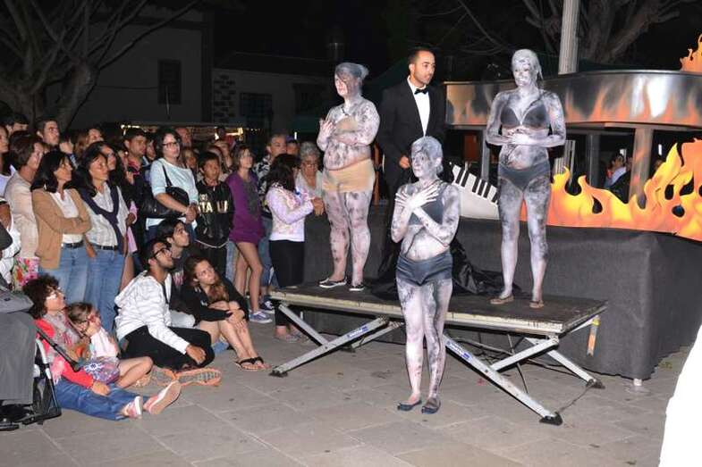 Un electo de veinticinco actores, todos ellos del municipio, dieron vida durante a una fantasiosa historia dirigida por el joven Aduén Hernández que no dejó a nadie indiferente y en la que durante 50 minutos se mezclaron las costumbres de una tierra con los demonios, la magia y la candela del fuego purificador.