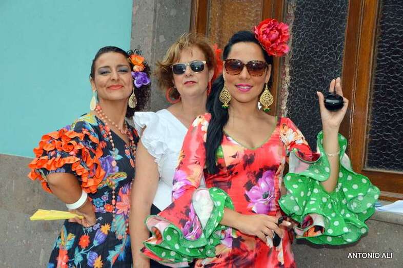 A este lugar llegaron los participantes a pie, en calesa o montados en caballo, desde el solar situado al Poniente del Colegio Público Amelia Vega de Monzón, de donde arrancó el desfile de claro sabor andaluz.