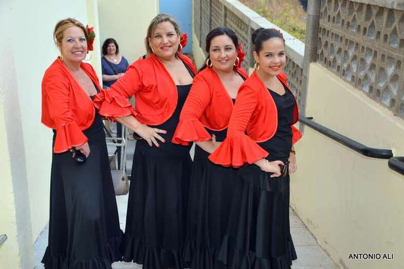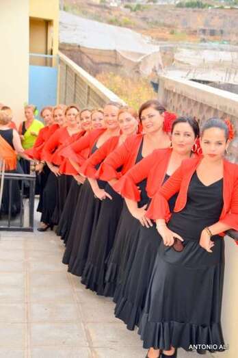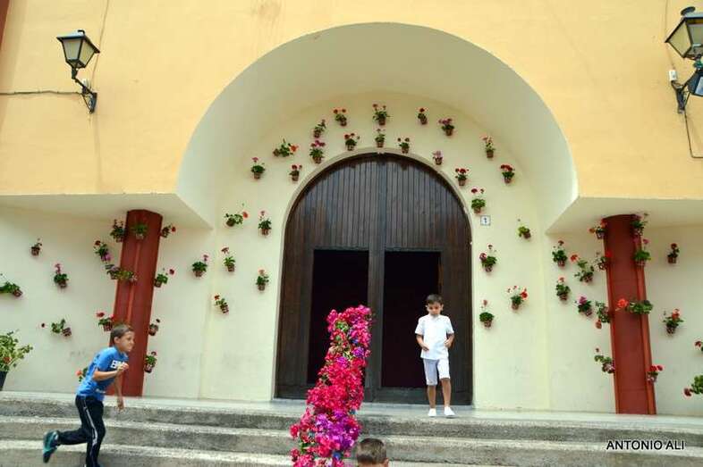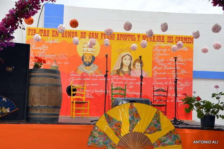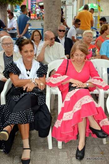 La plaza situada delante de la fachada principal del templo parroquial fue el lugar donde se celebró la fiesta con la participación de varios grupos rocieros que deleitaron al público presente con una exhibición de bailes típicos andaluces.
