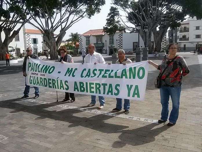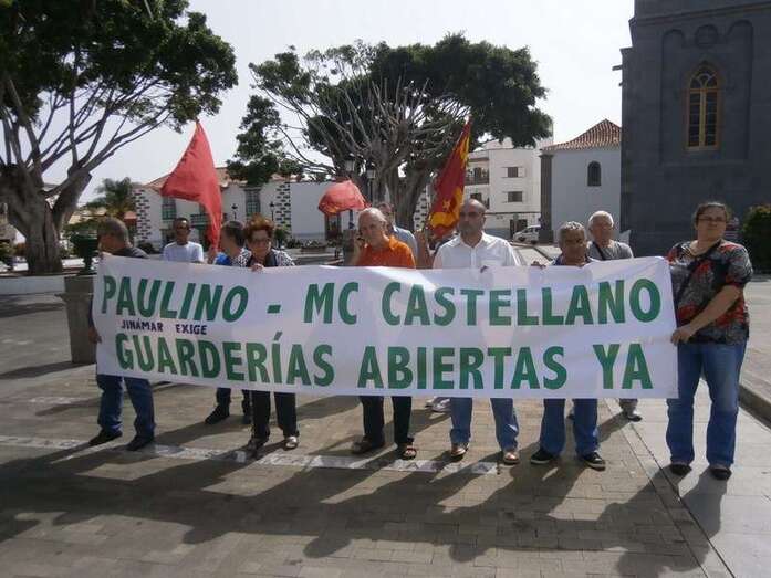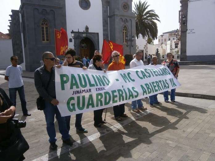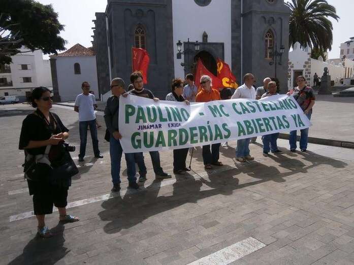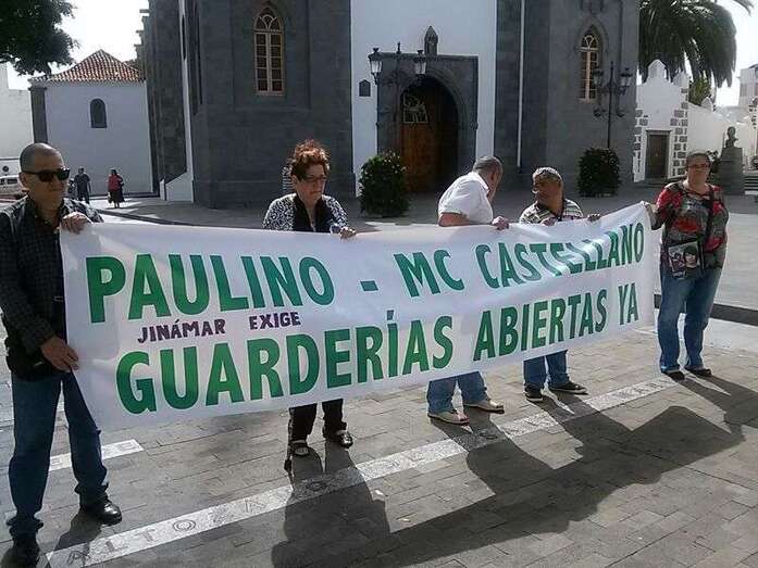 En la manifestación en la plaza se agruparon alrededor de 15 personas con una pancarta que pedía a la alcaldesa de Telde y al presidente del Gobierno canario, Paulino Rivero, que abran las guarderías. Además, gritaron consignas de que “Jinámar está en la lucha”.