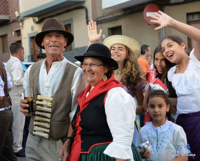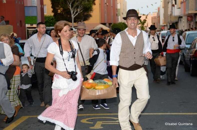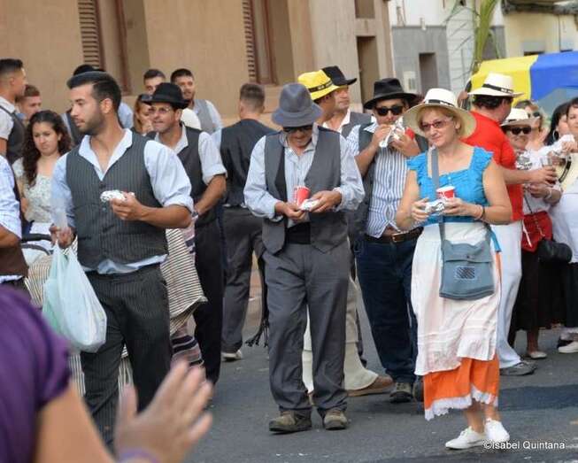 En todos ellos, carretas cargadas de productos canarios y agrupaciones folclóricas efectuaron el recorrido de costumbre hasta llegar hasta los pies de la patrona para efectuar la ofrenda, mientras el público asistente era invitado a degustar pan con chorizo, huevos duros y echarse un trago de ron de Telde.